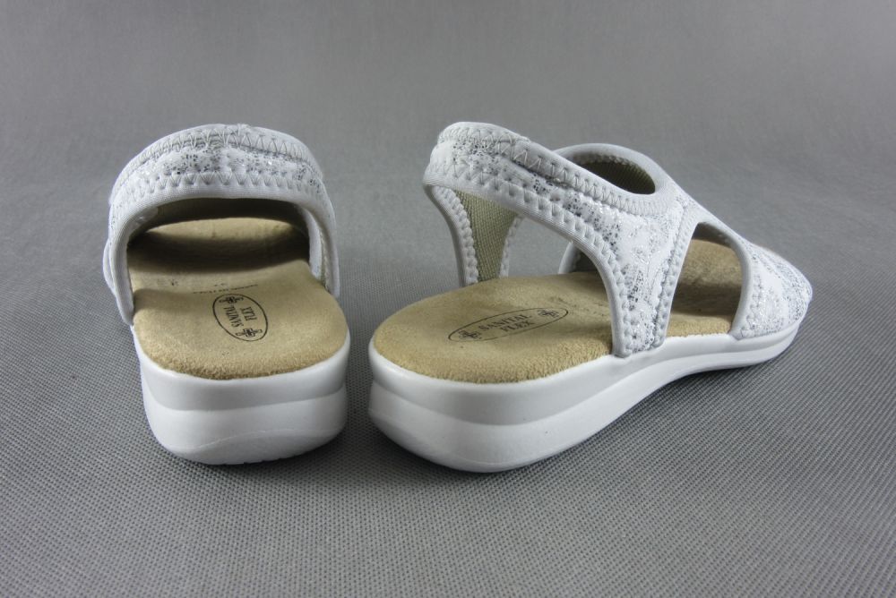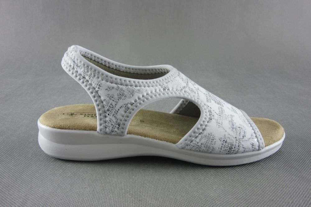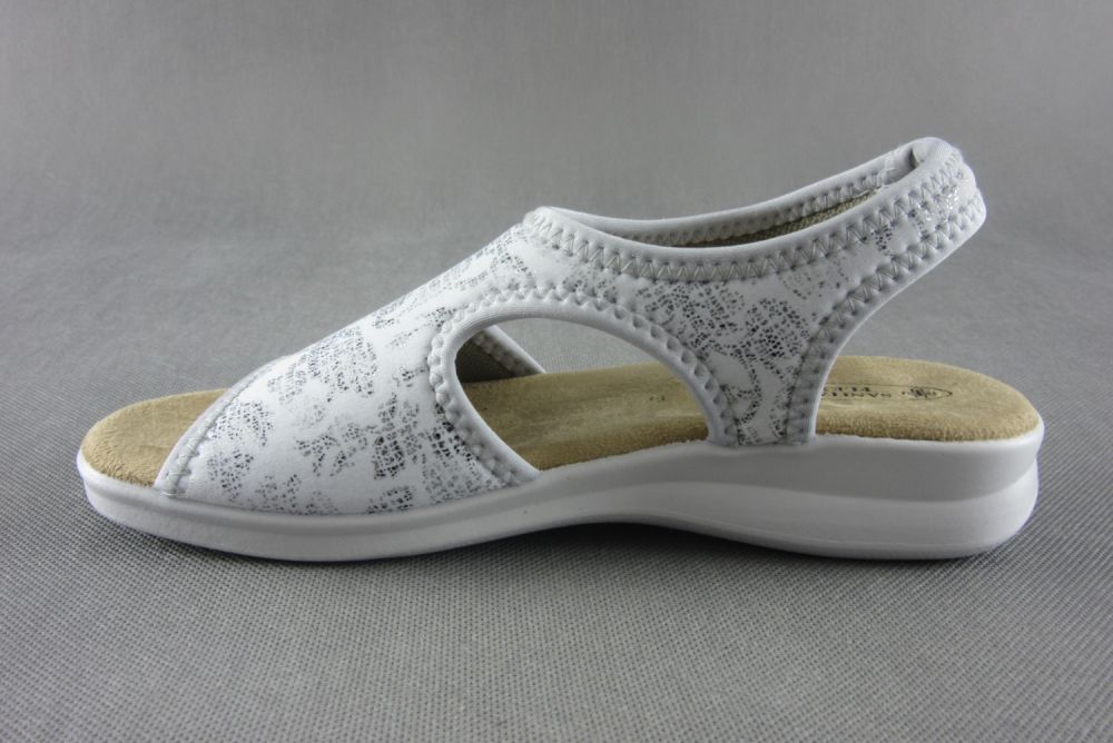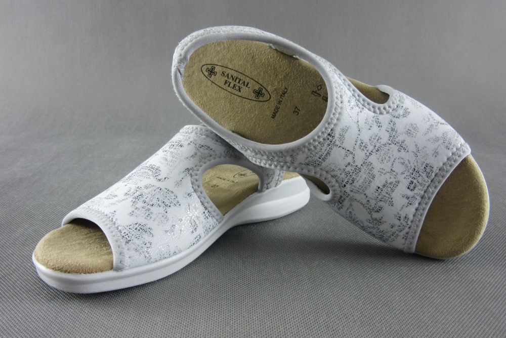 Zdrowotne sandały damskie Sanital Flex 8056.17 to ciekawa propozycja na okres letni włoskiego producenta. Cholewka uszyta została z miękkiego materiału typu stretch, która ma właściwości rozciągające, dzięki czemu idealnie dopasuje się do kształtu stopy. Nie posiada żadnego przeszycia, a więc nic nie będzie uwierało podczas chodzenia. Jest to też szczególnie ważne dla stóp, które mają wystające kości, haluksy. Obuwie jest bardzo lekkie i wygodne. To zasługa przede wszystkim odpowiednio dobranym podeszwom, ale również miękkim wkładkom, na których stopy będą czuły się bardzo komfortowo.