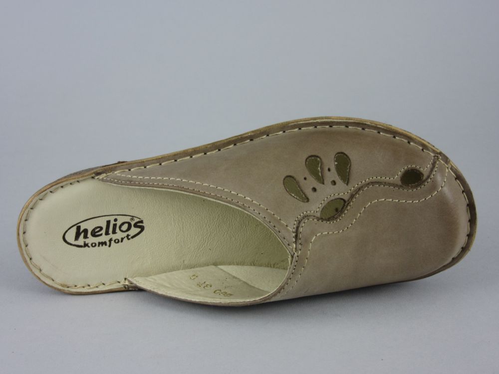 Obuwie firmy Helios wykonane zostało z najwyższej jakości skóry naturalnej. Spody antypoślizgowe z wysokiej jakości tworzywa PU odpornego na pękanie. Zastosowana bardzo miękka wkładka ze skóry naturalnej zapewnia uczucie wygody przez wiele godzin. Klapki cieszą się dużym uznaniem wśród klientów, składa się na to solidne wykonanie i użyte do ich wykonania materiały. Eleganckie wzornictwo opracowano w oparciu o najnowsze trendy mody, w połączeniu z wysoką jakością wkonania oraz dbałością o komfort użytkowania dostarczy wiele zadowolenia.