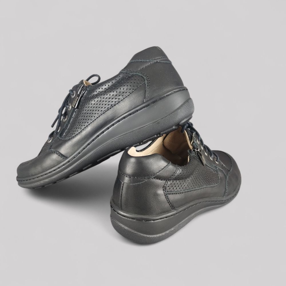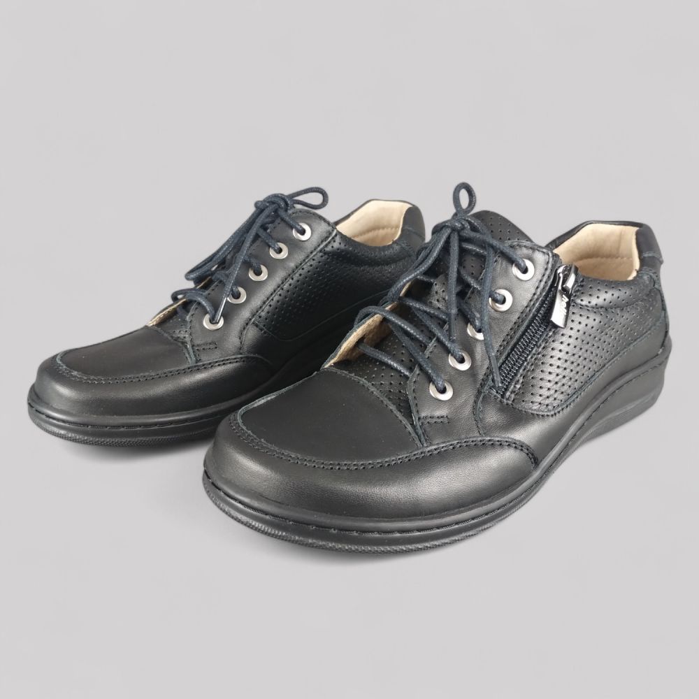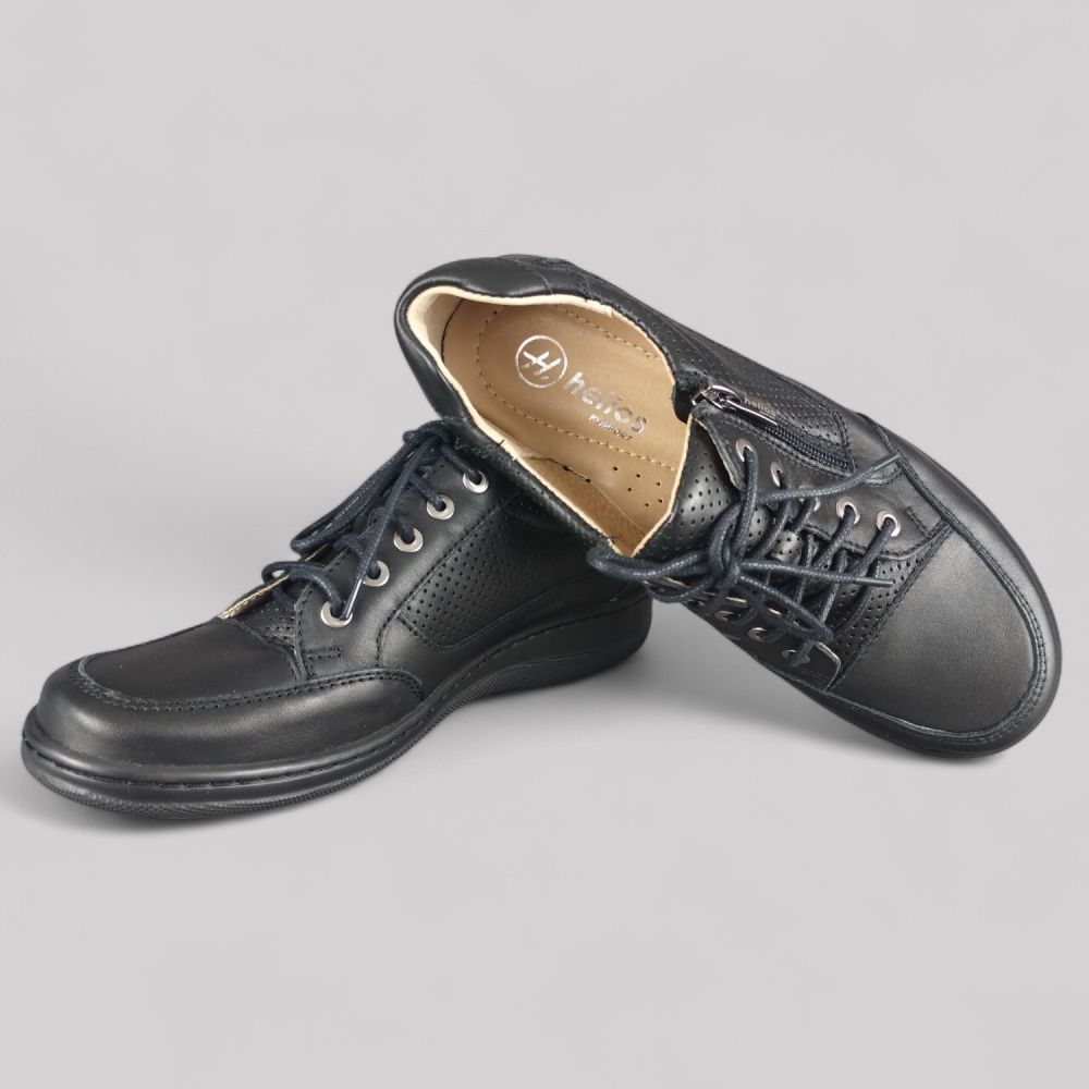 Polskie Półbuty Helios 357 (Czarny) – Miękka Skóra, Sznurówki, Zamek