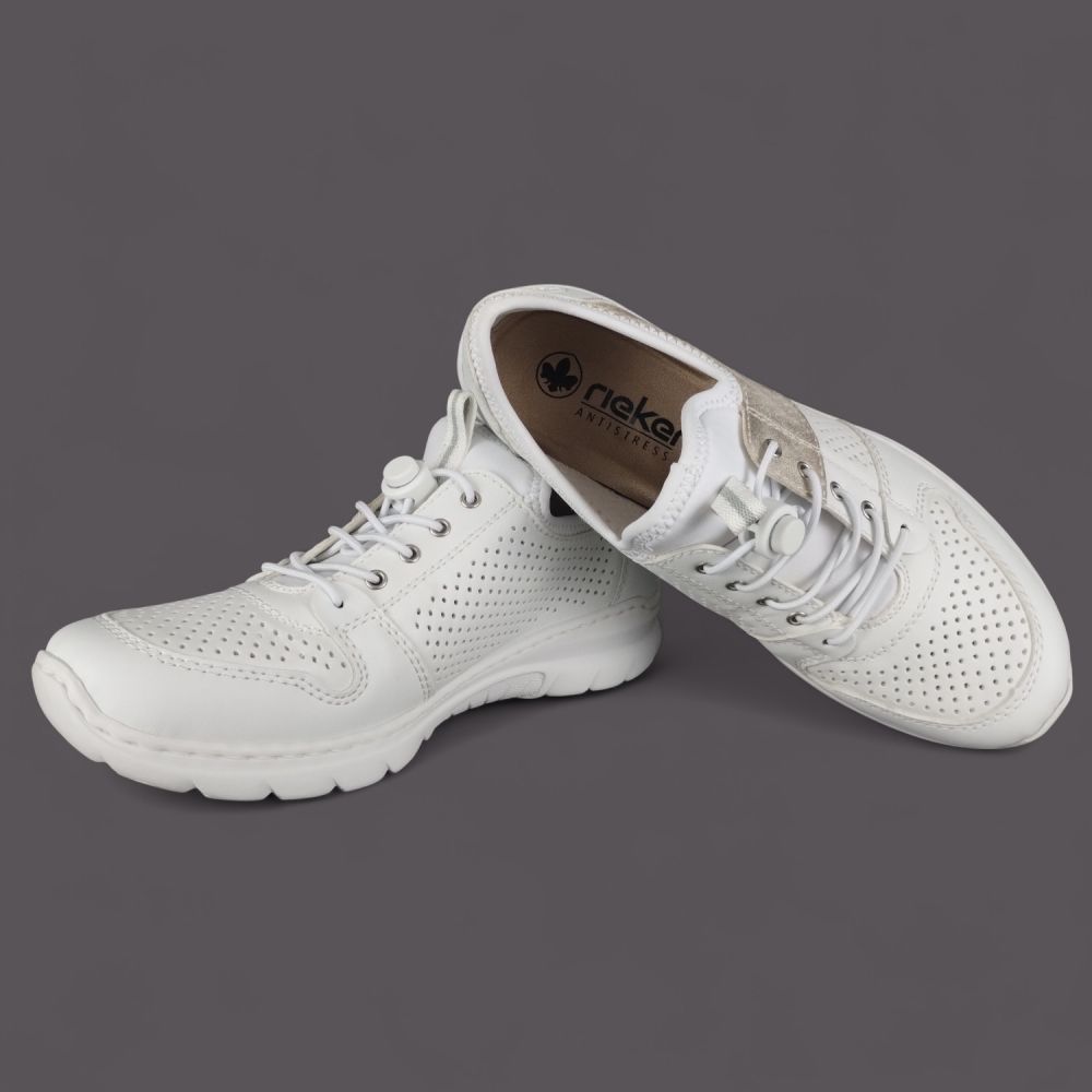 Półbuty Damskie Rieker L3254-80 Białe Złote | Wkładka Memory