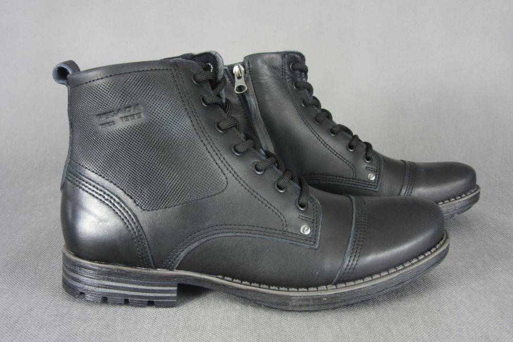 Trzewiki zimowe męskie koloru czarnego brazylijskiej firmy Pegada. Proponowany model posiada cholewkę uszytą ze skóry naturalnej. Jest ona zaprojektowana z myślą o maksymalnym ułatwieniu w zakładaniu, czy też zdejmowaniu obuwia, oraz o optymalnym dopasowaniu do tęgości nóg. W tym celu zastosowano rozwiązanie w postaci sznurówek oraz wszycie zamka błyskawicznego od wewnętrznej strony. Dzięki temu można idealnie dopasować obuwie do nogi. Wnętrze ocieplone jest przyjemnym polarem, który w sposób skuteczny chronił będzie stopy przed zimnem. Podeszwy są lekkie i posiadają bieżnik, tak więc na wędrówki po trudnym terenie idealnie się nadadzą. Wbudowany w podeszwy został specjalny systemem Amortech System Technology, który gwarantuje komfort i wygodę każdego dnia. Zastosowane wkładki w tych butach, to sprężysta pianka o dużej gęstości, absorbująca wstrząsy i odciążająca kręgosłup, dodatkowym ich atutem jest dopasowywanie się podczas chodzenia do kształtu stopy, dlatego też uczucie wygody występuje zaraz po pierwszym założeniu.
