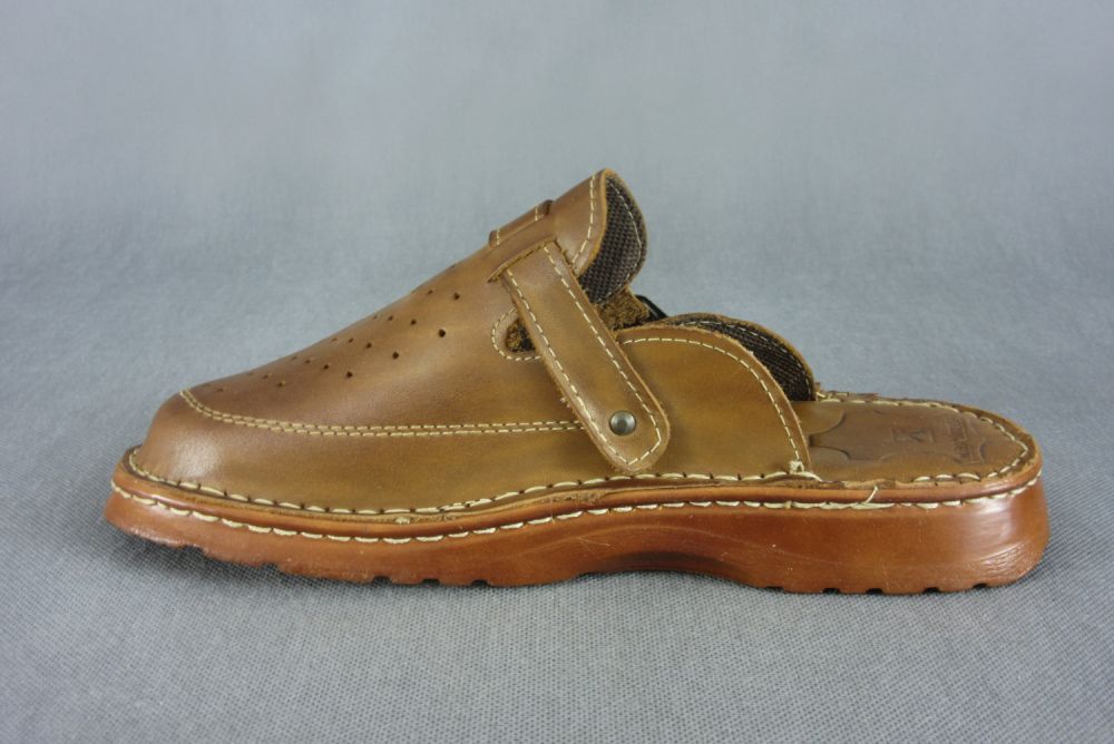 Skórzane klapki męskie MAXIMUS, to lekkie i wygodne obuwie w kolorze brązowym polskiego producenta. Wykonane zostały z bardzo dobrych gatunkowo materiałów i naturalnych skór, aby zapewnić stopom maksymalny komfort i wygodę. Cholewka zaprojektowana jest z myślą o idealnym dopasowaniu do tęgości nóg. Uszyta została z miękkiej skóry naturalnej z wytłoczoną na niej perforacją w postaci dużej ilości dziurek. Dzięki nim wewnątrz zwiększona będzie cyrkulacja powietrza i stopy nie będą się znacząco pocić. Klejone i w całości obszyte nitką dodatkowo wzmacnia to trwałość użytkowania. Wewnątrz wkładka również jest ze skóry, a do tego jest też ona bardzo miękka. Uczucie wygody wyczuwane jest zaraz po założeniu obuwia na nogi.