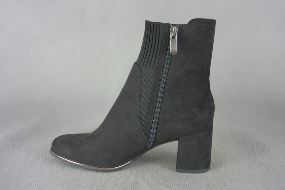 Botki damskie na obcasie koloru czarnego, wykonane przez niemieckiego producenta firmę Marco Tozzi.