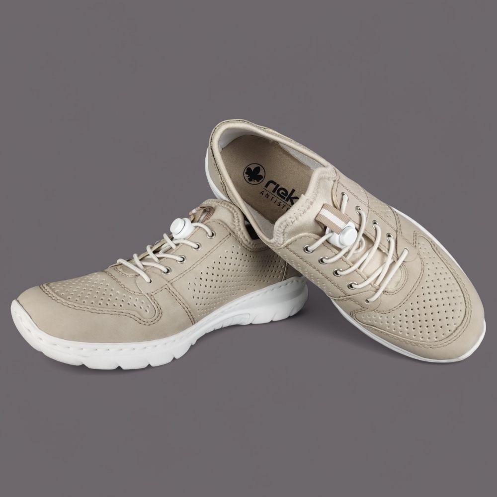 Półbuty Sportowe Rieker L3254-62 Beżowe – Wkładka MemoSoft i Perforacja