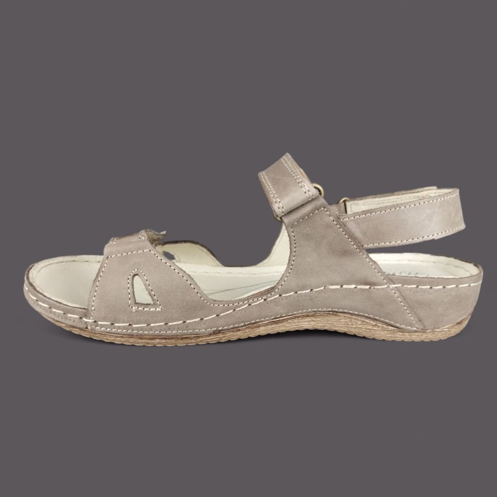 Beż to kolor, który nigdy nie wychodzi z mody — i właśnie dlatego sandały Helios 205 w tym odcieniu to inwestycja na wiele sezonów. Stonowany, ciepły taupe pasuje do wszystkiego — od jeansów po letnie sukienki — a system trzech regulowanych rzepów sprawia, że but dopasowuje się do stopy, a nie odwrotnie. Polska produkcja, skóra naturalna, linia Komfort.