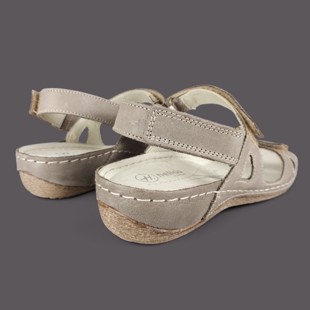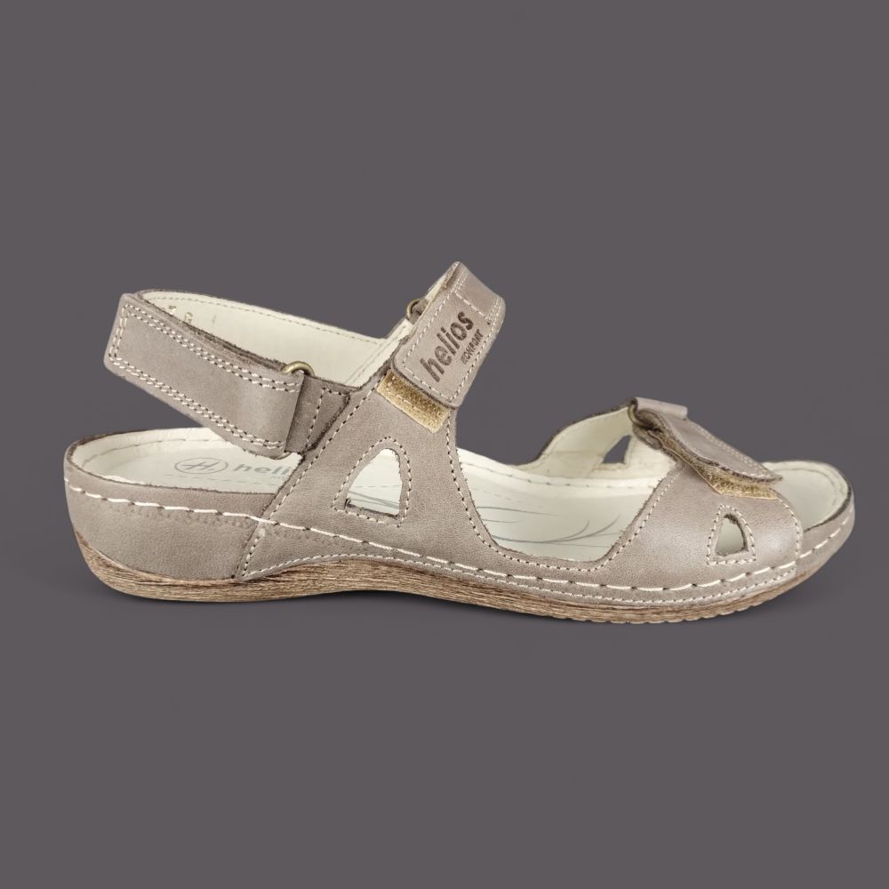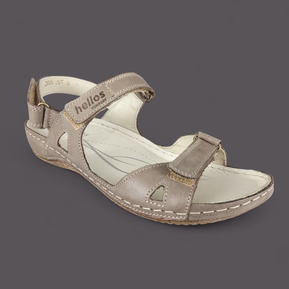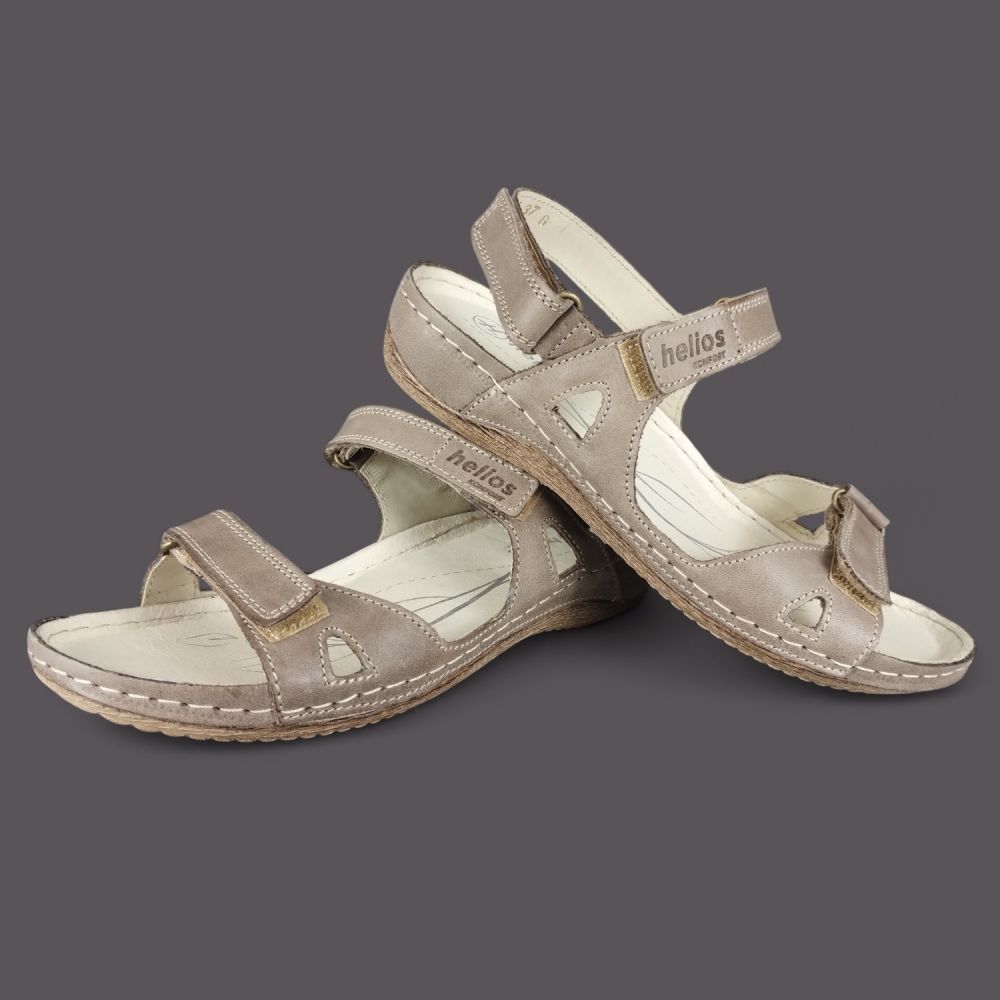 Sandały damskie Helios 205 – beżowe, skórzane, Komfort, trzy rzepy