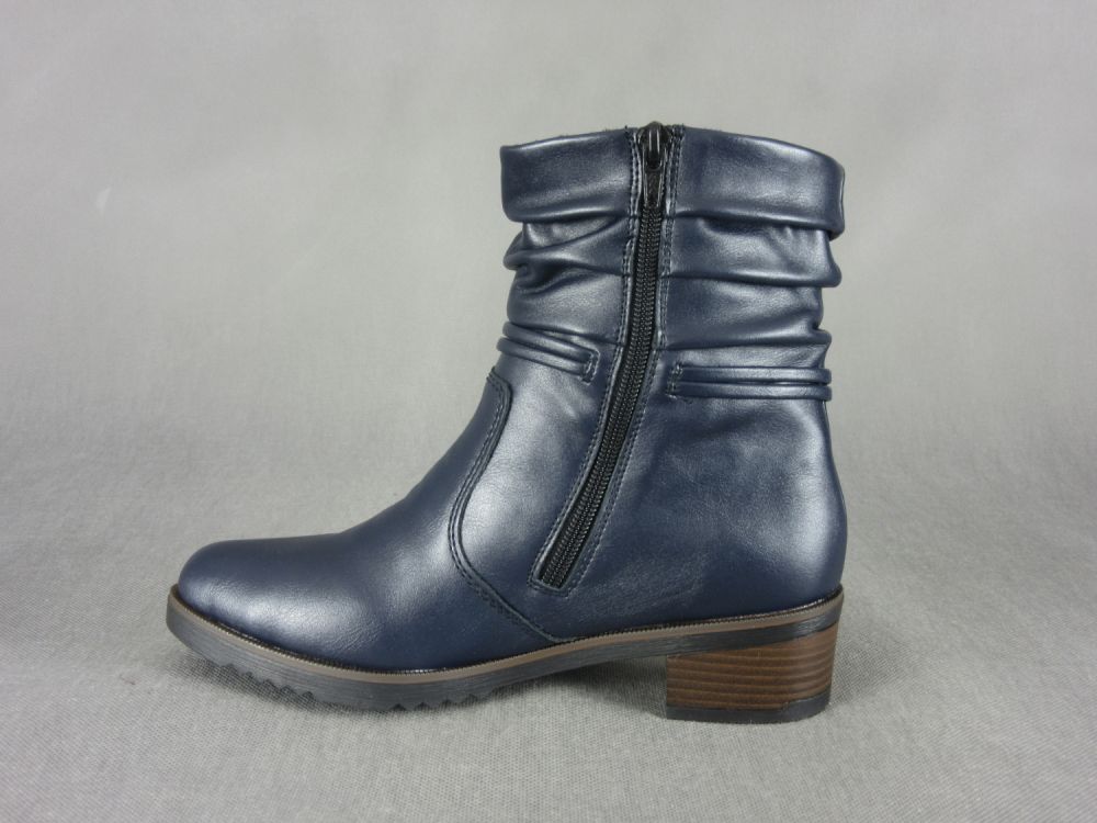 Komfortowe botki damskie marki Rieker koloru granatowego.