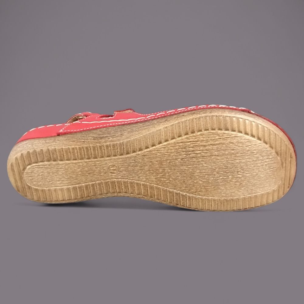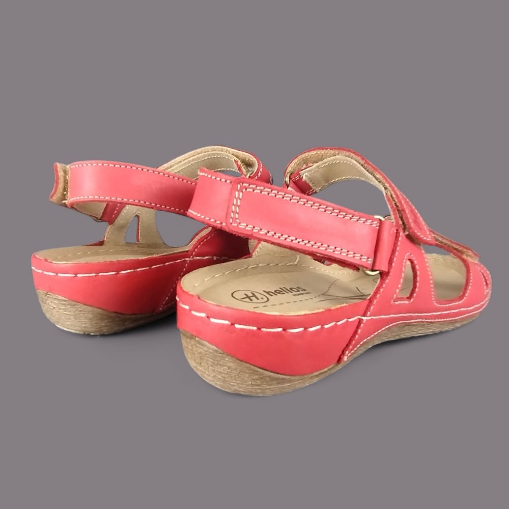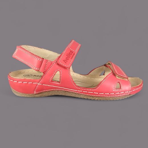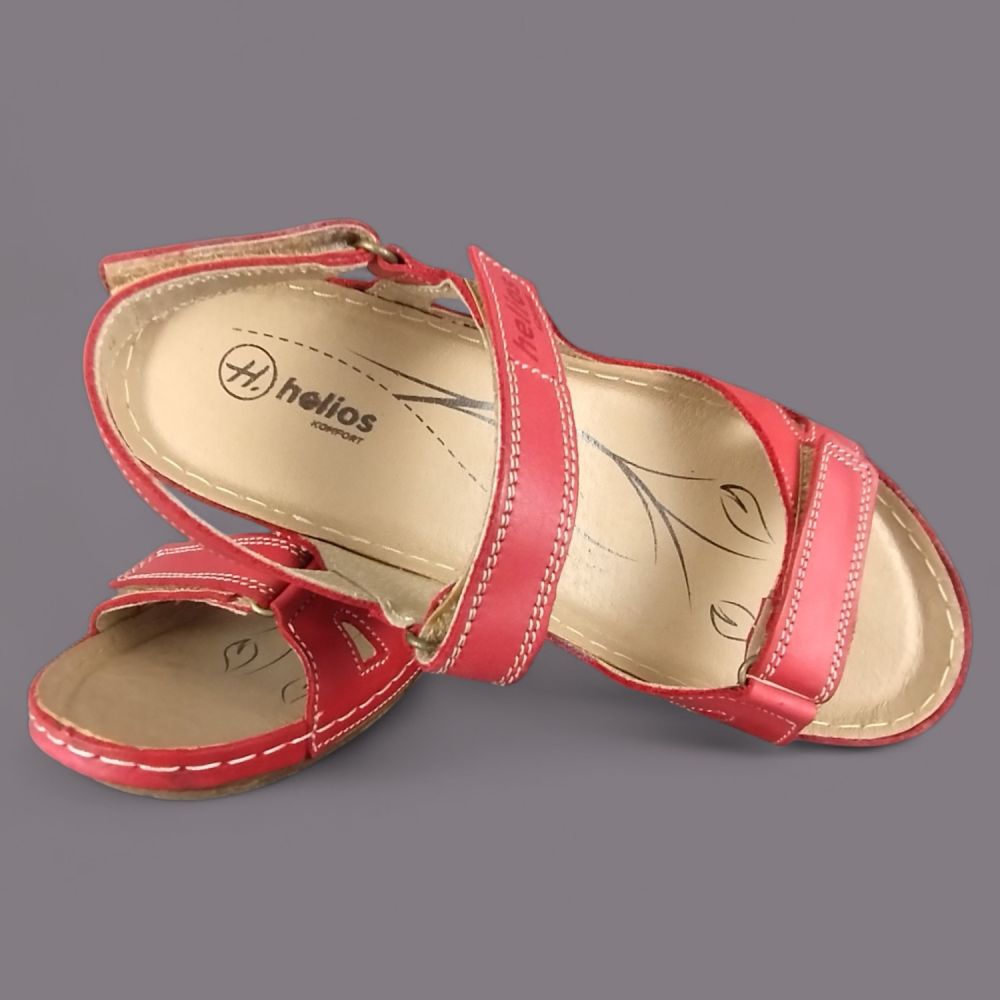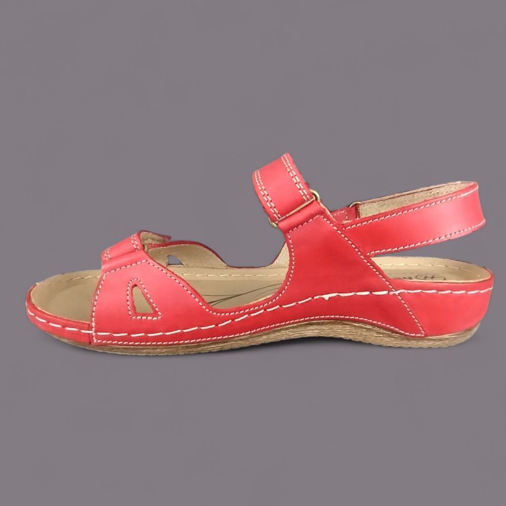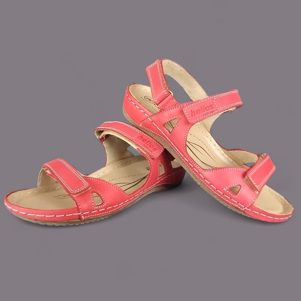 Sandały damskie Helios 205 – czerwone, skórzane, Komfort, trzy rzepy