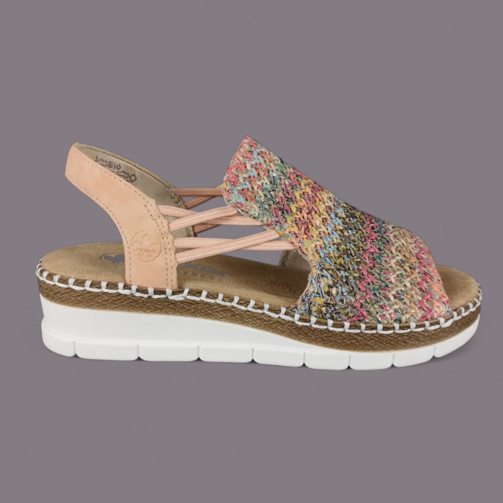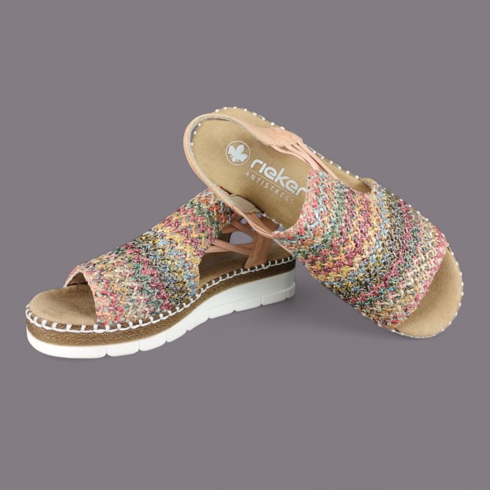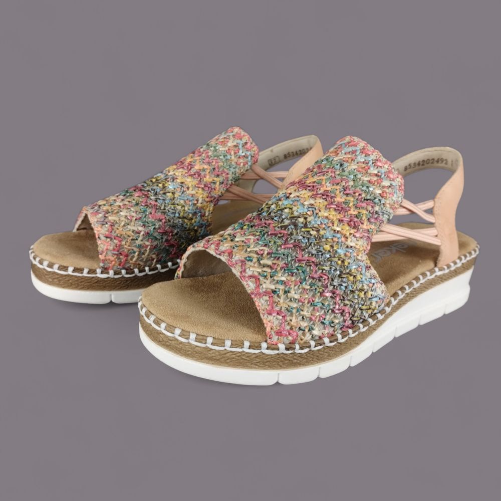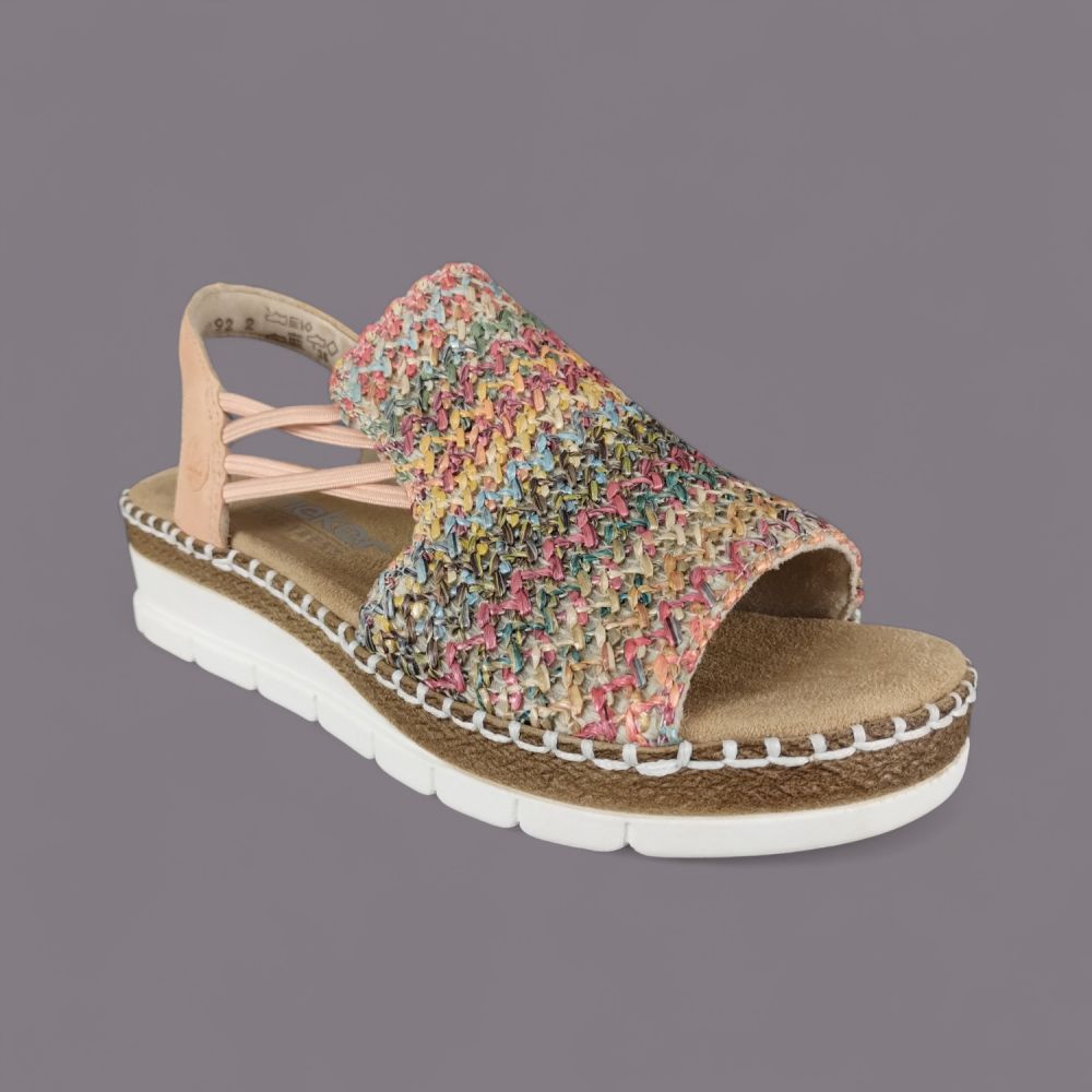 Kolorowe Sandały na Koturnie Rieker V1241-90 – Wakacyjny Styl i Wygoda
