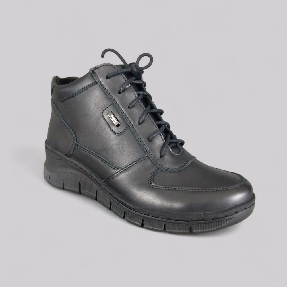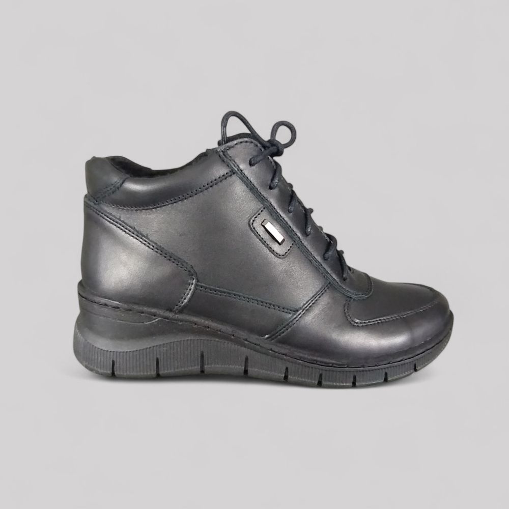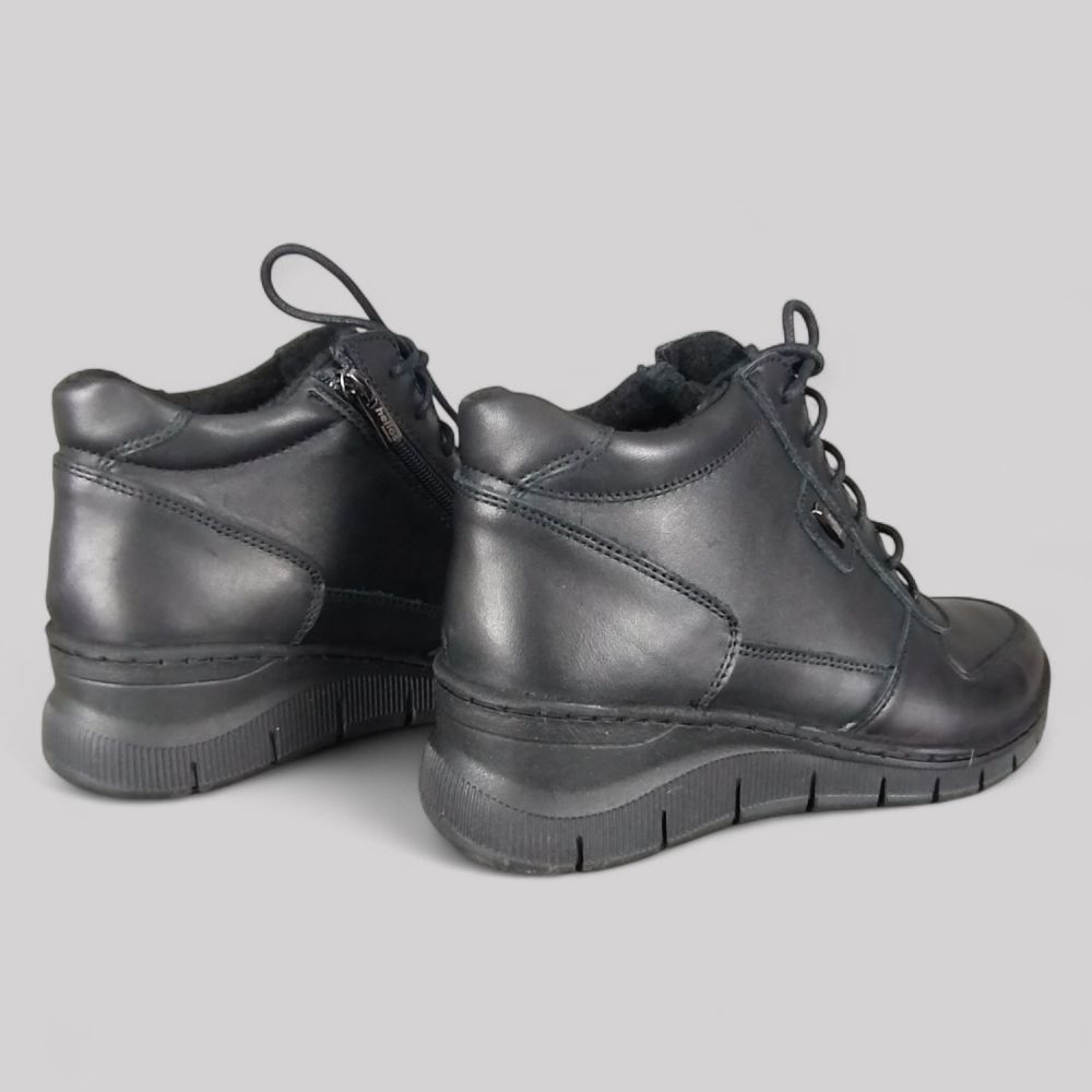 Czarne Skórzane Botki na Koturnie Helios 543S | Polskie Buty Zimowe