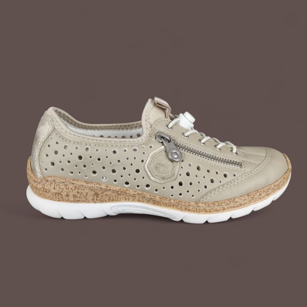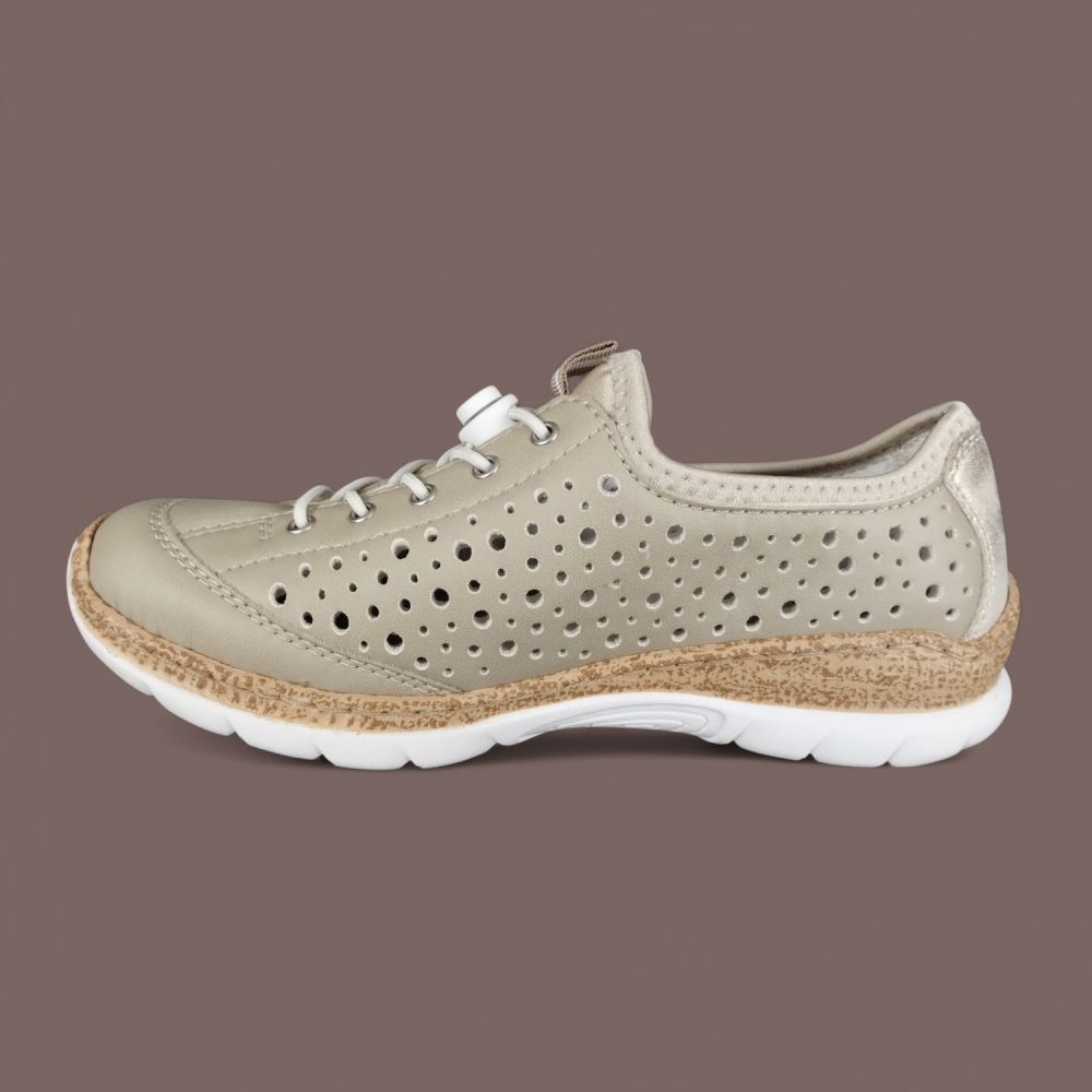 Szukasz butów, które dotrzymają Ci kroku w szybkim tempie dnia, a jednocześnie będą wyglądać stylowo? Półbuty damskie Rieker N42P6-62 w odcieniu subtelnego beżu to idealne połączenie sportowego fasonu z miejską elegancją. To model stworzony dla kobiet aktywnych, które cenią sobie nowoczesne rozwiązania i bezkompromisową wygodę.