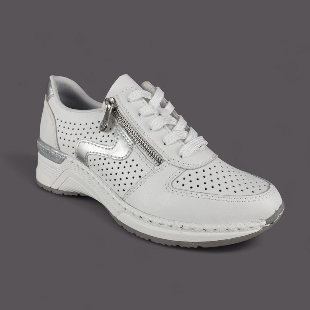 Półbuty Rieker N4340-80 Białe Skóra | Koturna Przewiewne