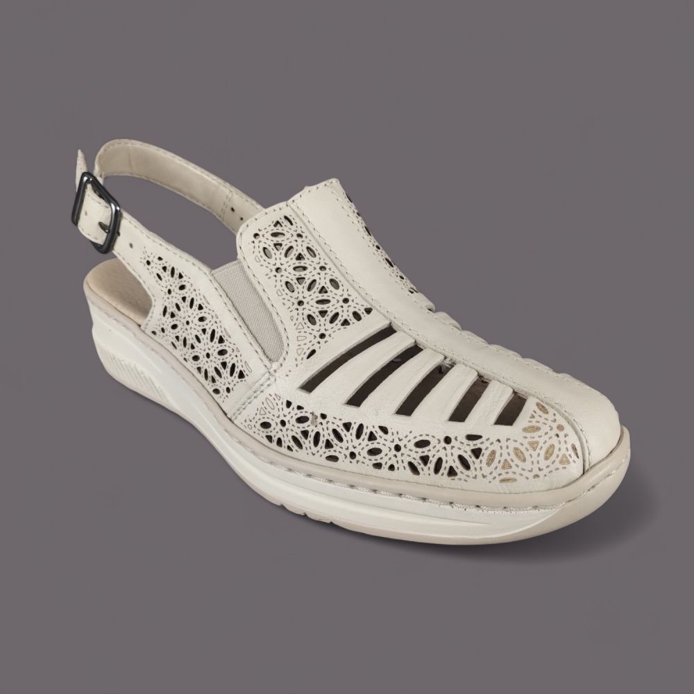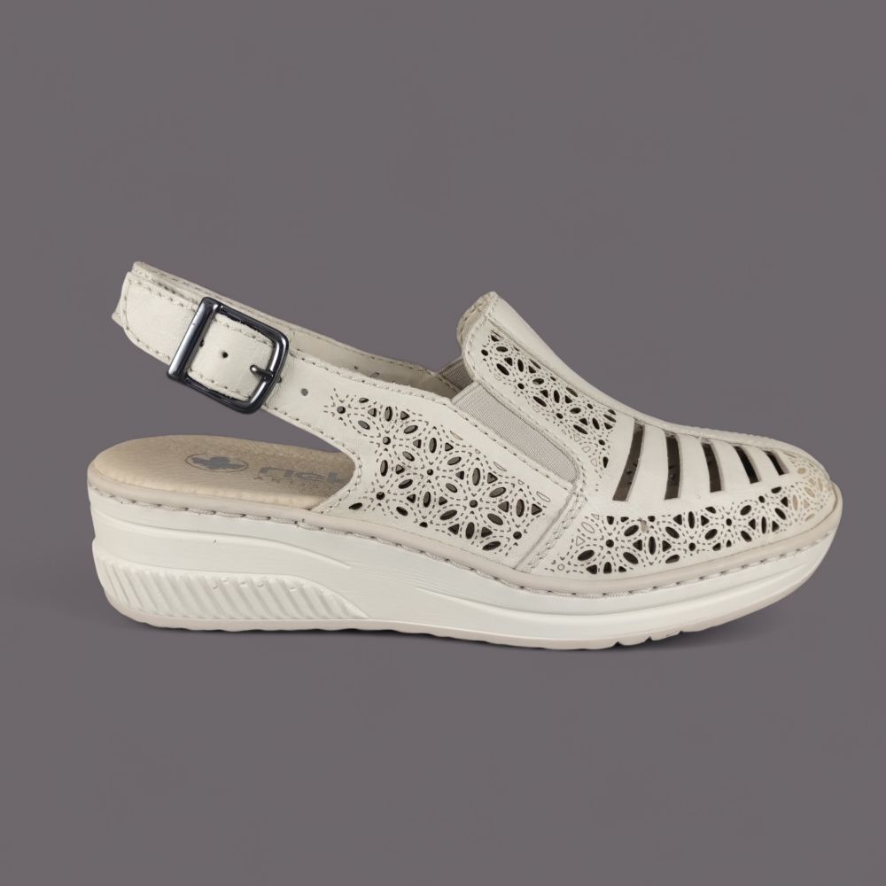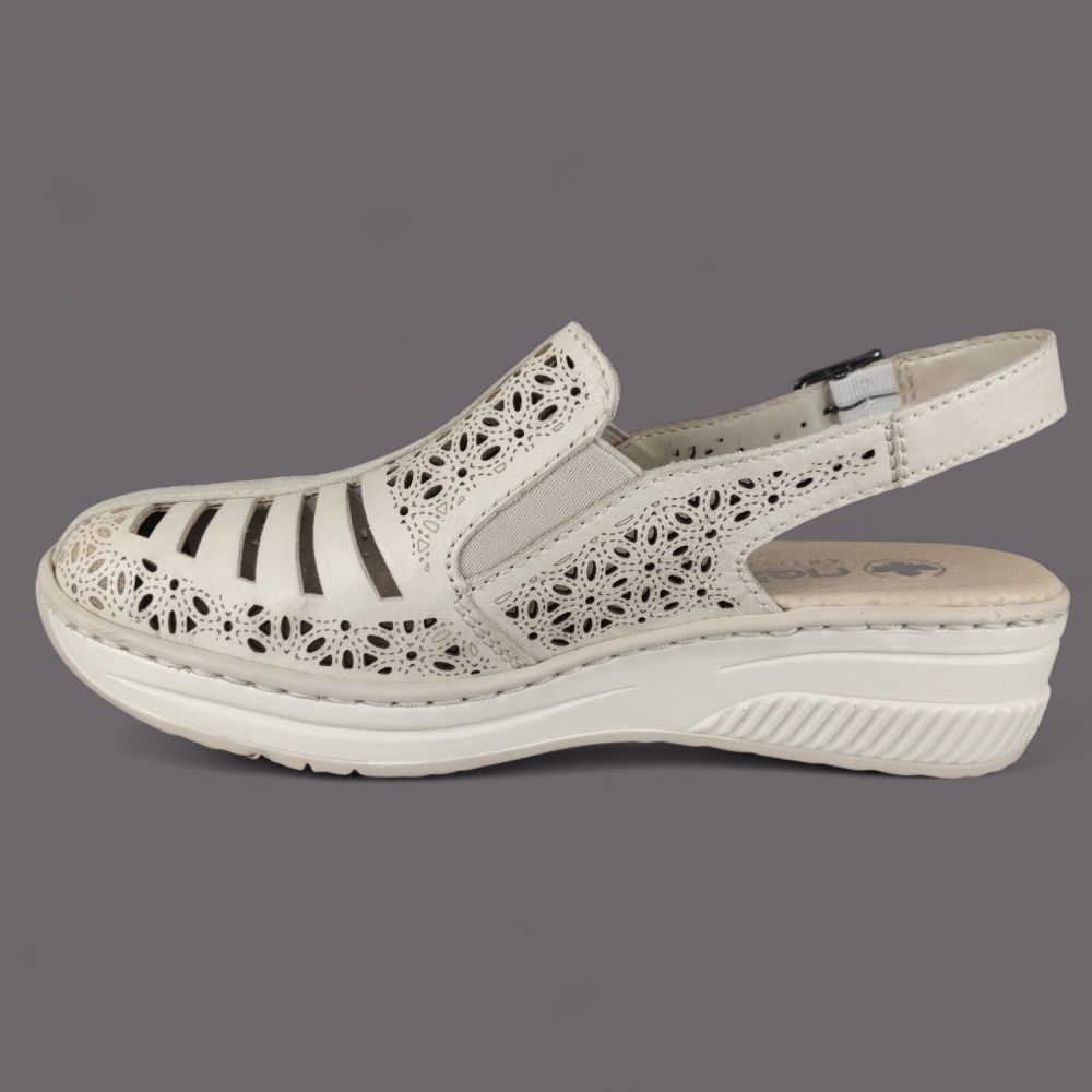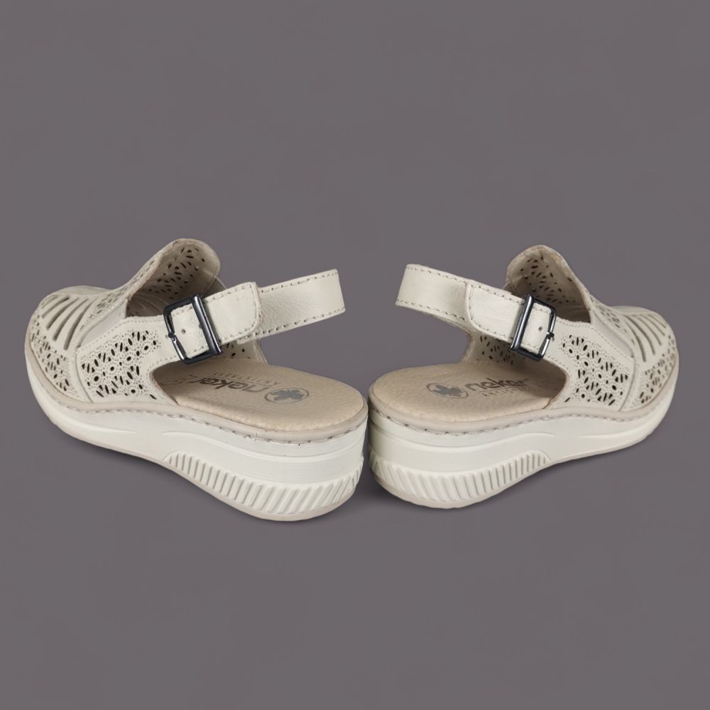 Sandały Damskie Rieker 48763-60 Beżowe – Zakryte Palce, Skórzana Wkładka