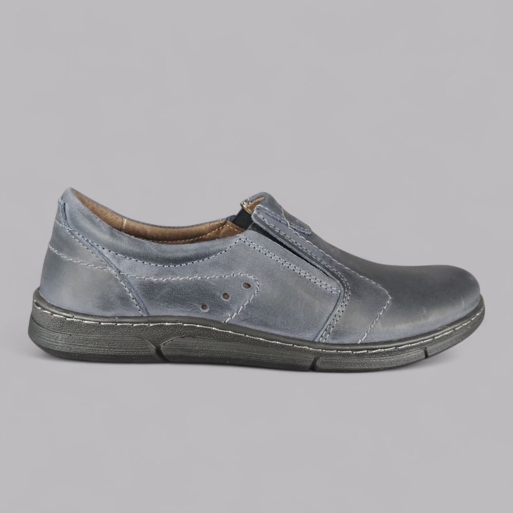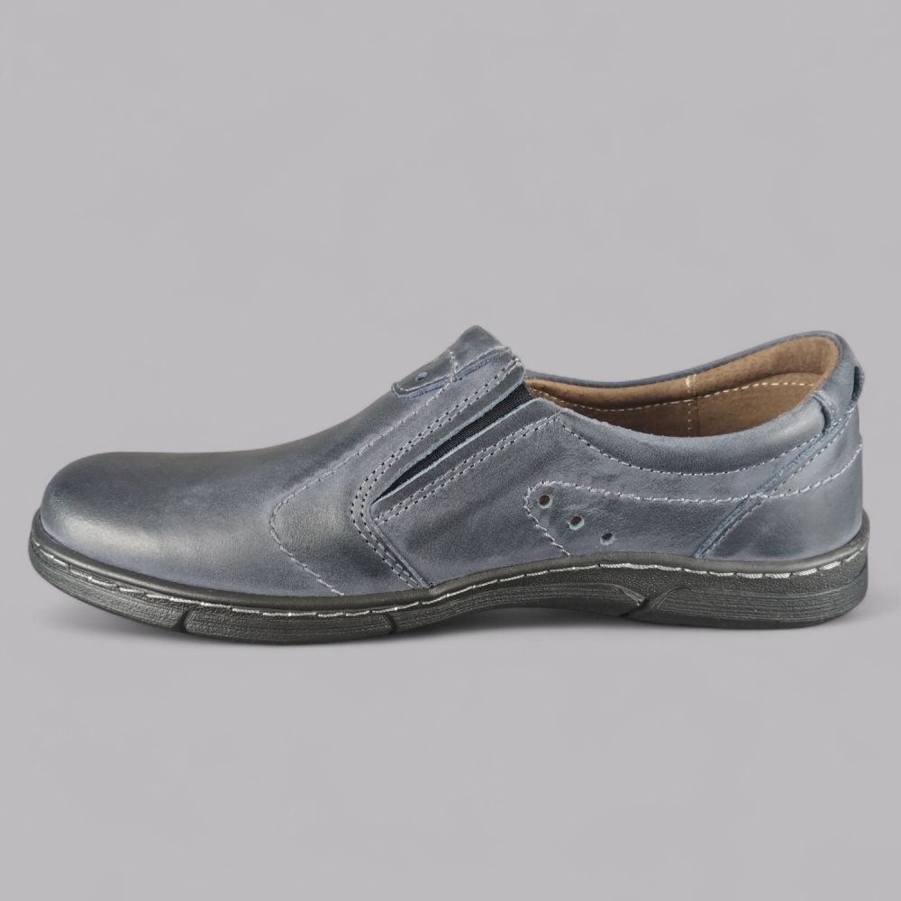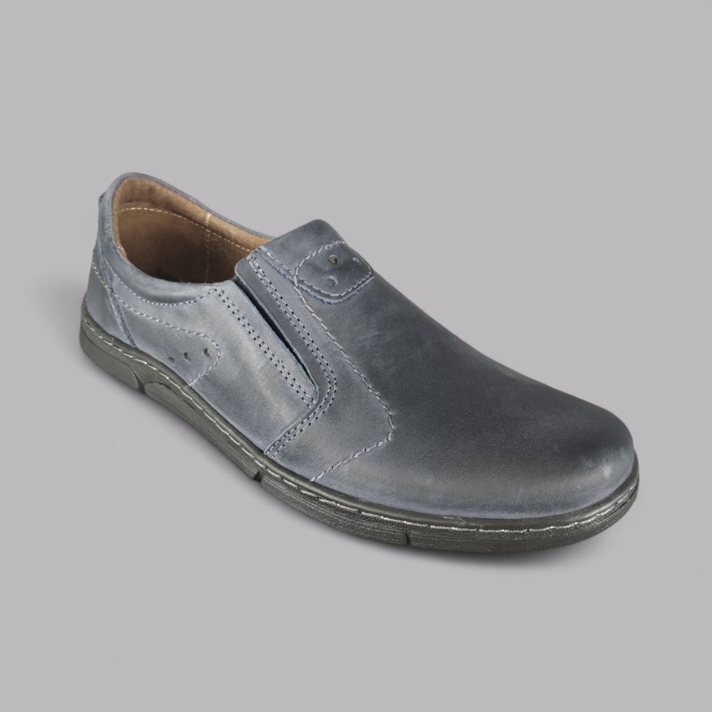 Wspieraj rodzime rzemiosło i postaw na jakość, która przetrwa lata. Półbuty męskie Mariusz 04 w kolorze eleganckiego granatu to duma polskiej produkcji. Wykonane w całości z naszych, krajowych materiałów, łączą w sobie trwałość tradycyjnego szewstwa z nowoczesnym komfortem użytkowania. To idealny wybór dla mężczyzn, którzy szukają butów "nie do zdarcia".