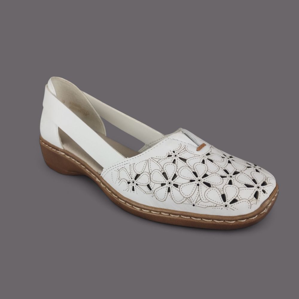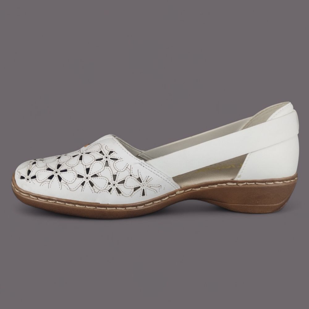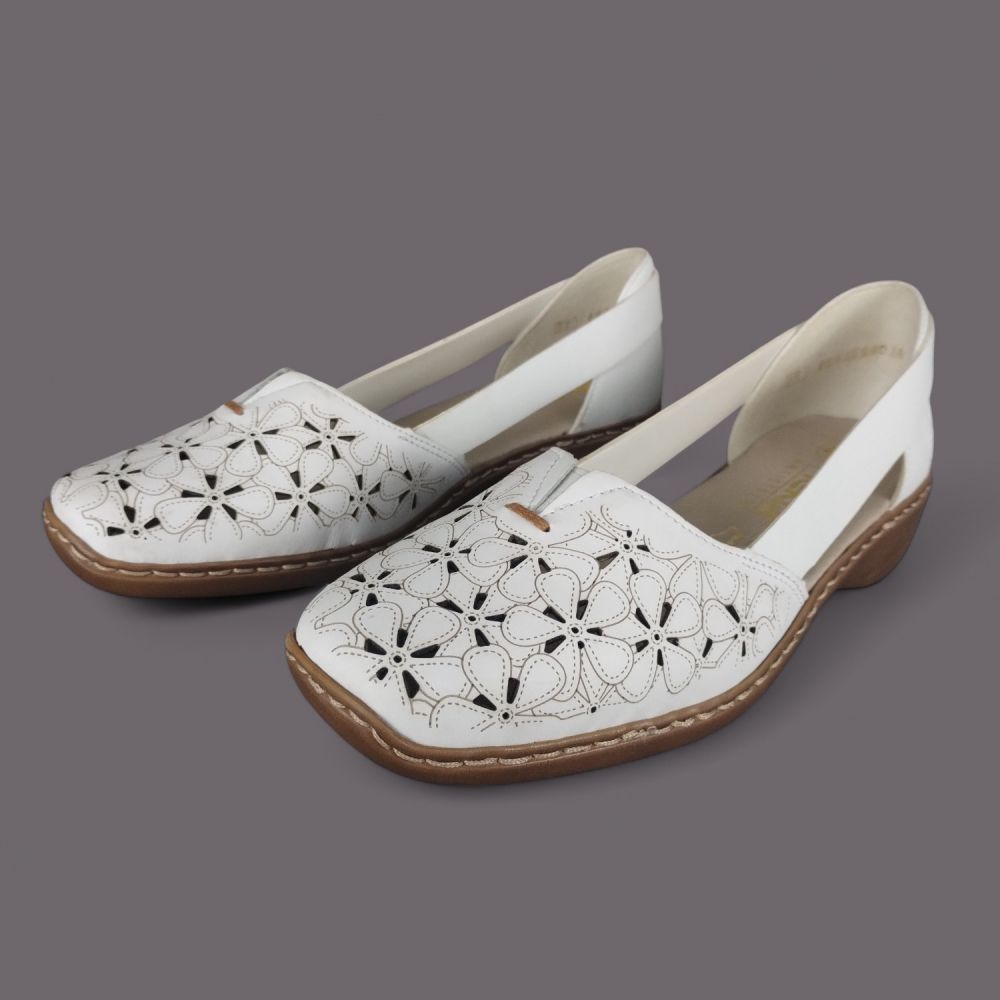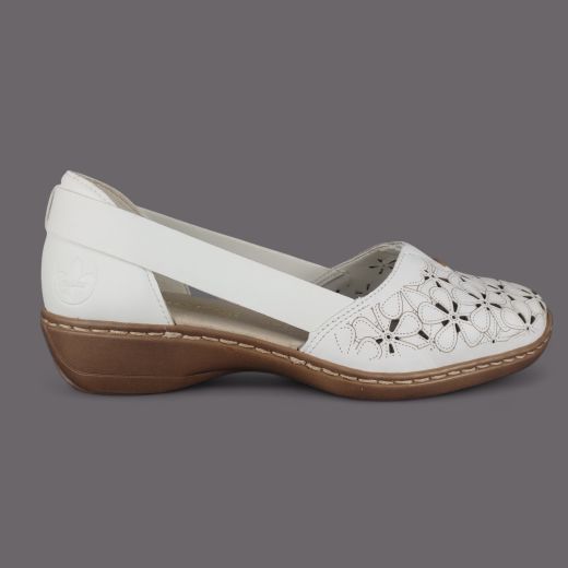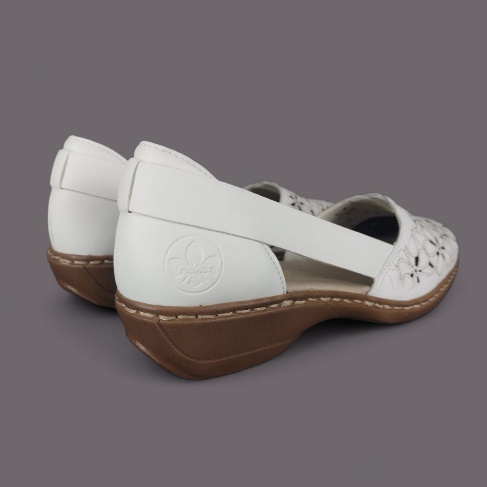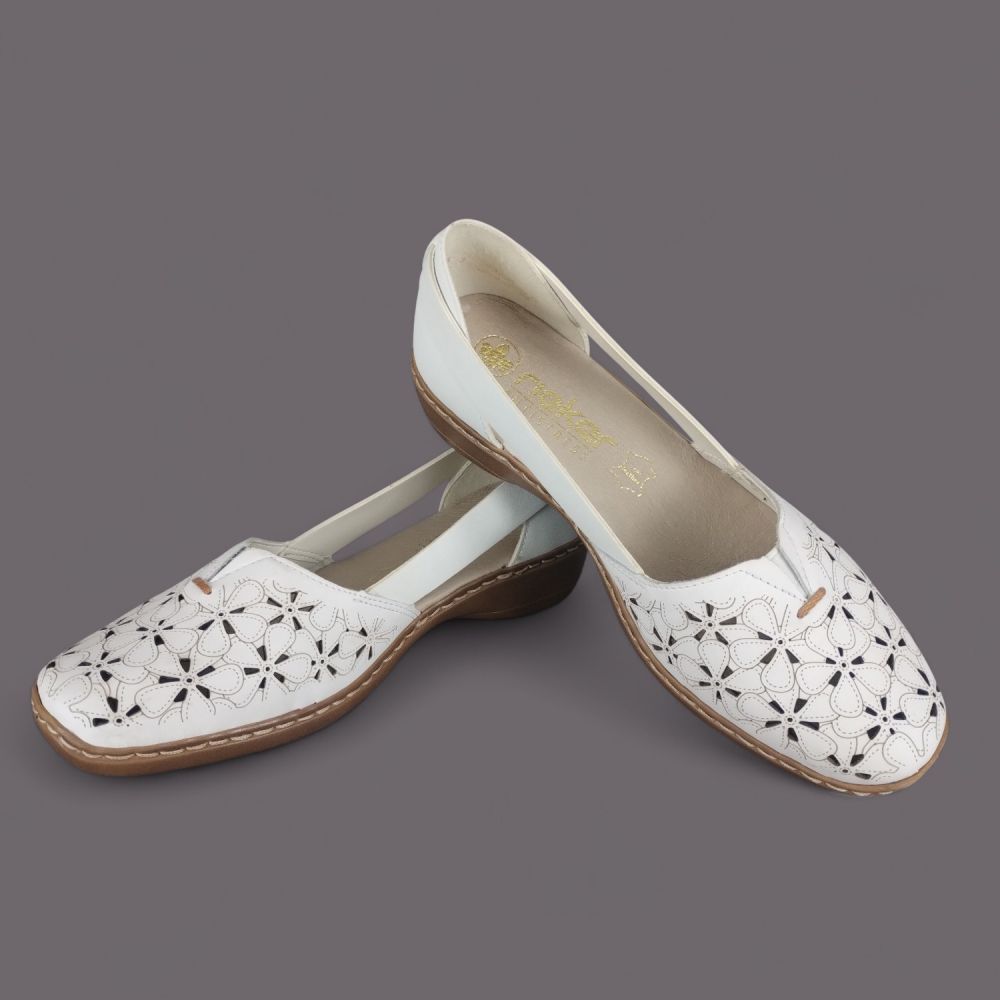 Półbuty damskie Rieker 41356-80 Białe – Ażurowa Lekkość i Komfort Skóry