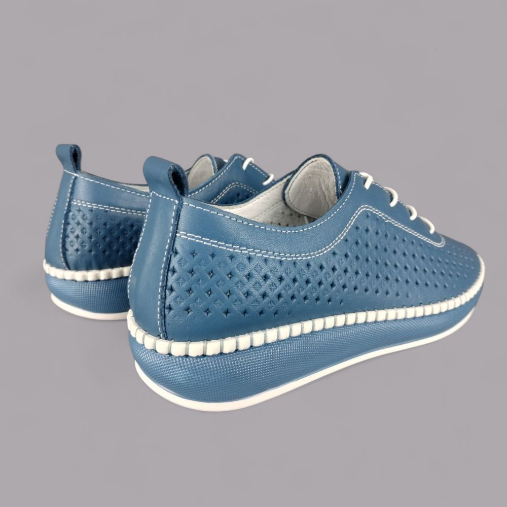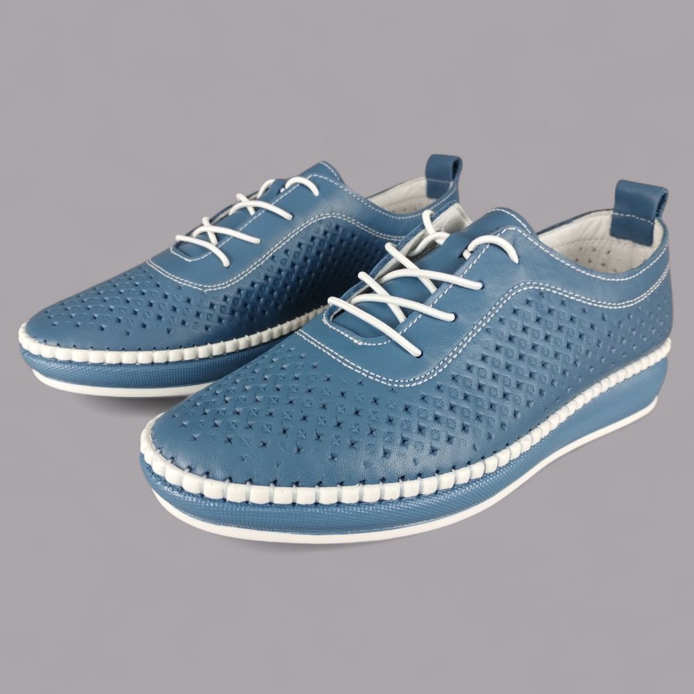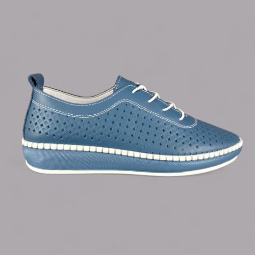 Półbuty damskie Loretta Vitale NY/110 Granatowe – Skóra Naturalna z Perforacją