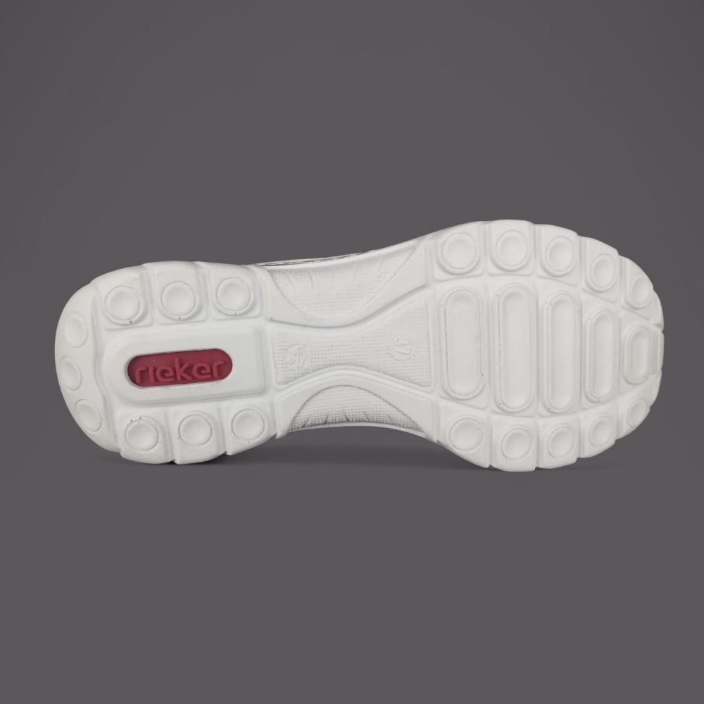 Podeszwa wykonana w technologii Rieker Antistress jest lekka, elastyczna i skutecznie pochłania wstrząsy przy każdym kroku. Ugina się naturalnie z ruchem stopy, nie stawiając oporu. Odciąża stawy kolanowe i kręgosup przy długim chodzeniu — szczególnie ważne przy twardych nawierzchniach miejskich.