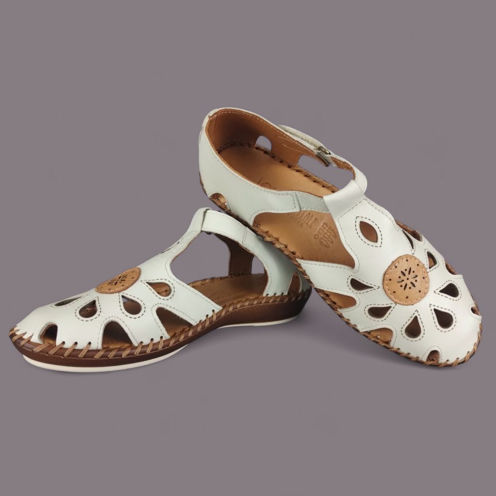 Sandały damskie Loretta Vitale T5204 Białe – Skóra Naturalna, Medalion Kwiatowy, Włoski Ścieg