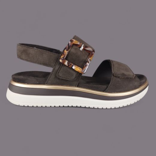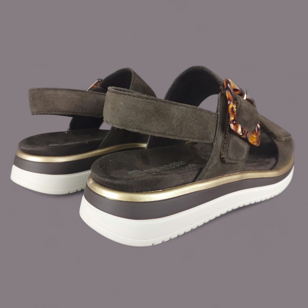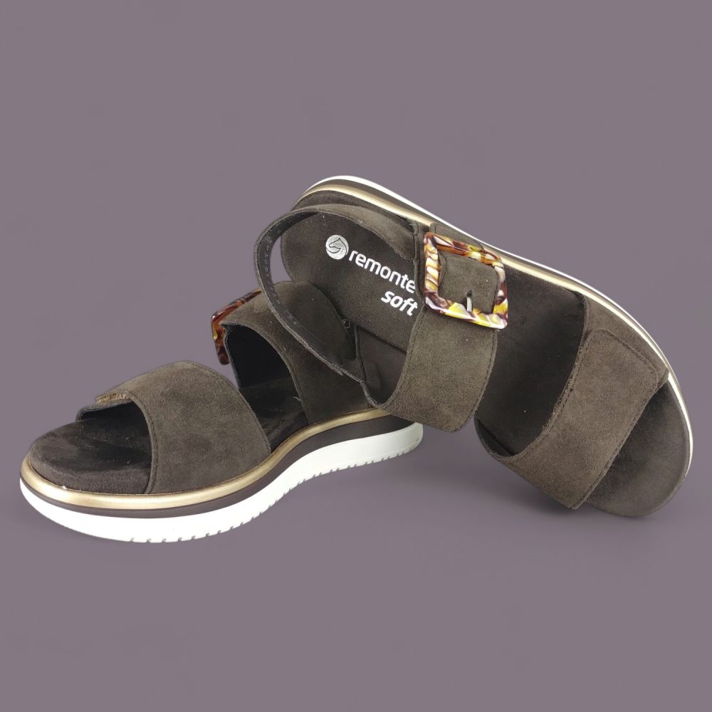 Sandały damskie Remonte D1J62-25 Brązowe – Zamsz, Klamra Tortoise Shell, Lite'n Soft