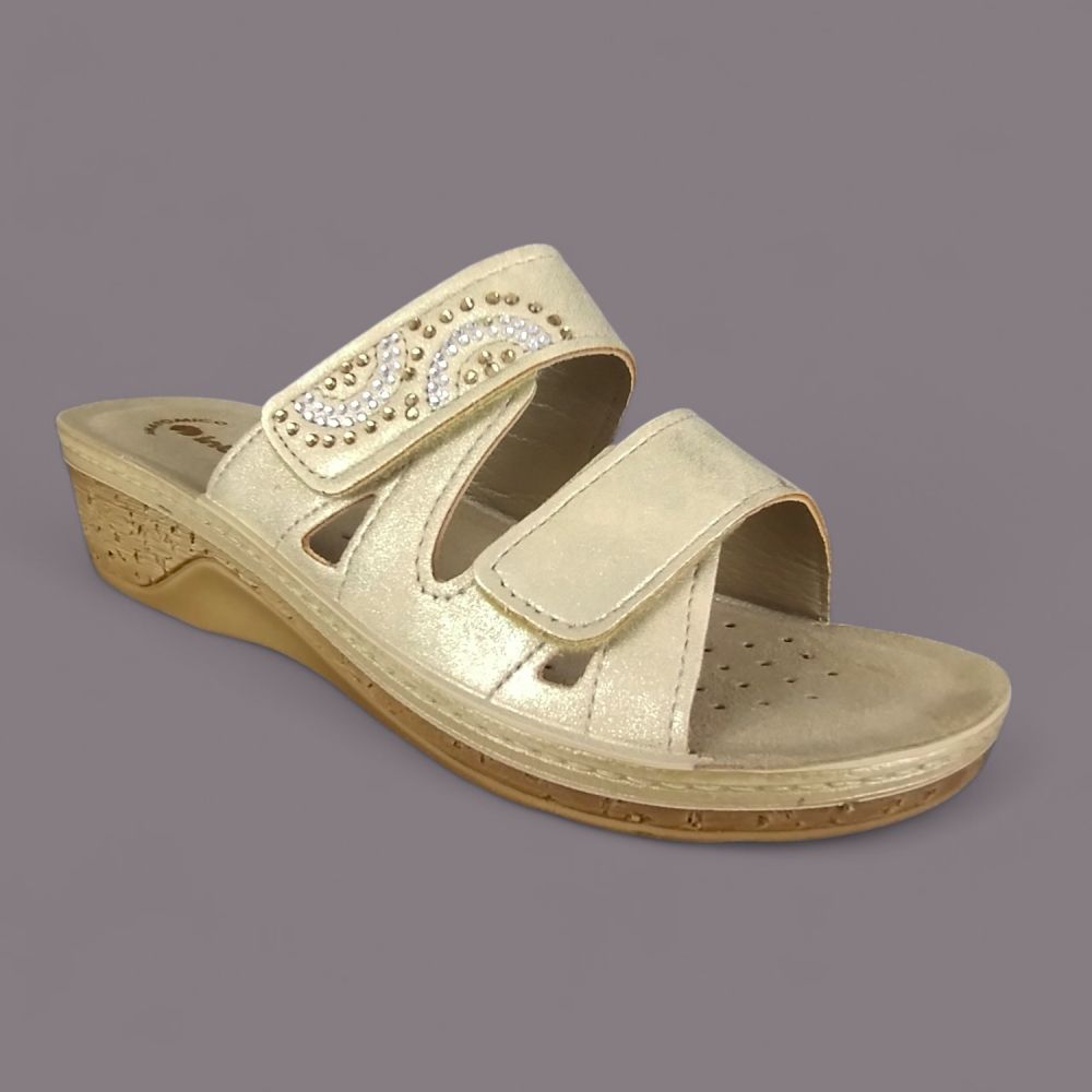Klapki damskie Inblu PV000015 Złote – Dżety, Koturna Korkowa 4,5cm, Soft Anatomico Vera Pelle