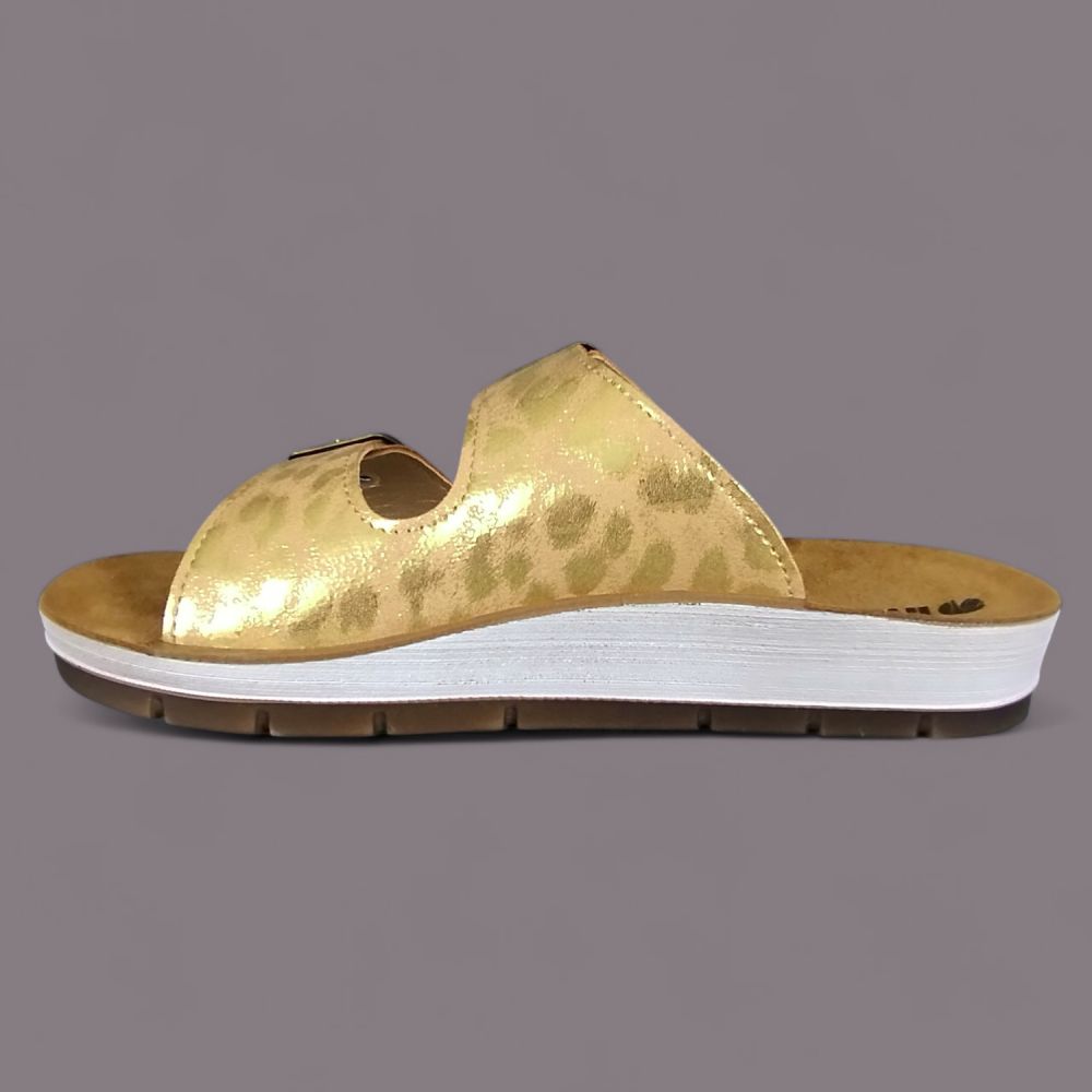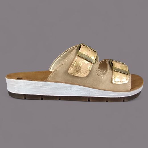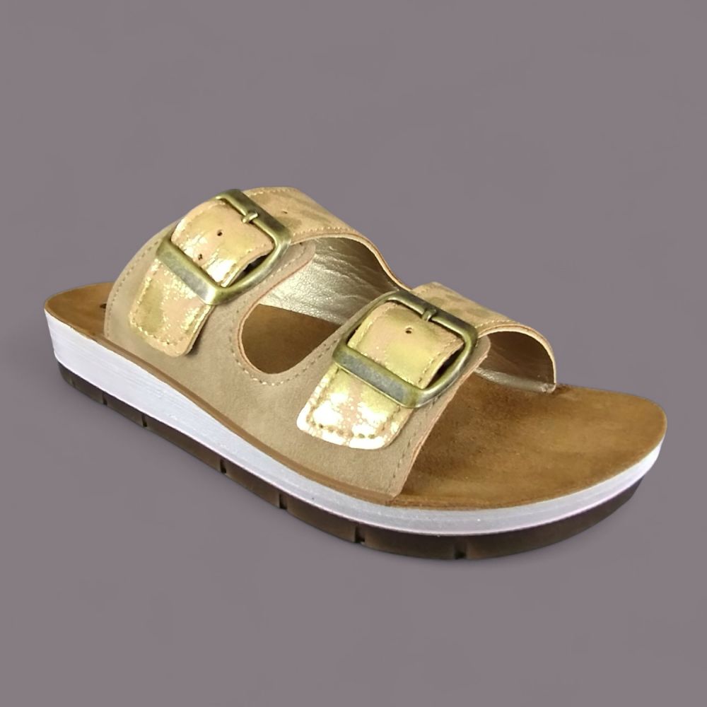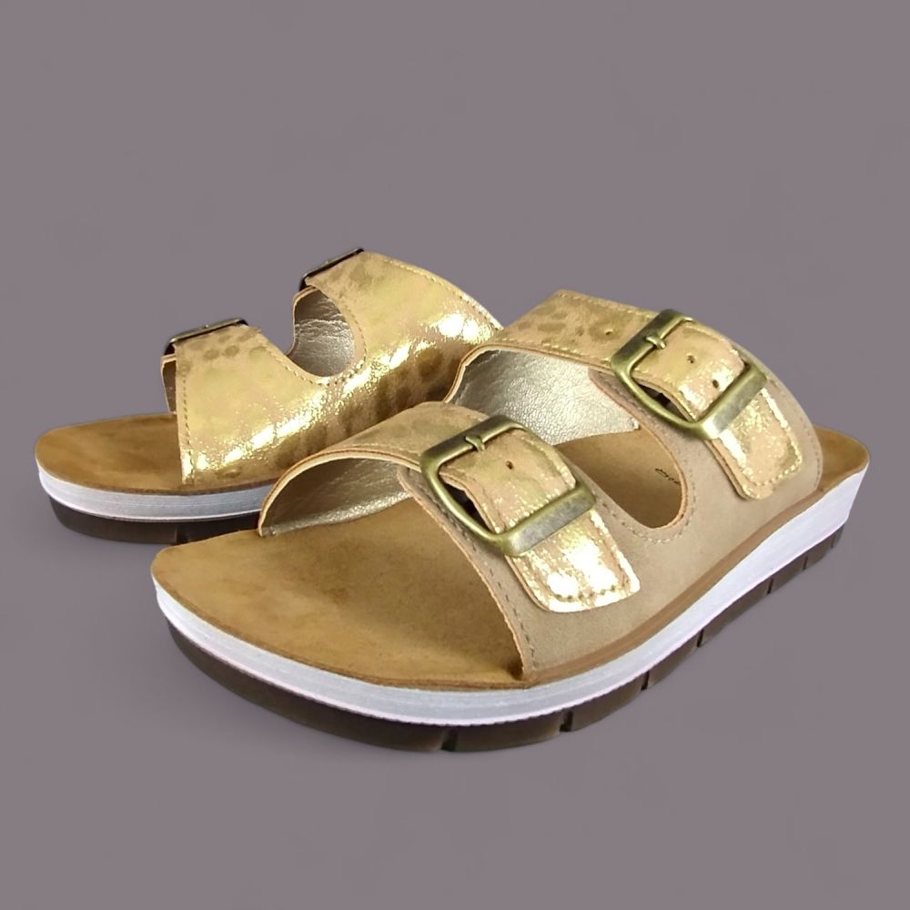 Klapki damskie Inblu CP000063 Rose Gold – Ekoskóra Metaliczna, Dwie Klamry Antyczne Złoto, Vera Pelle