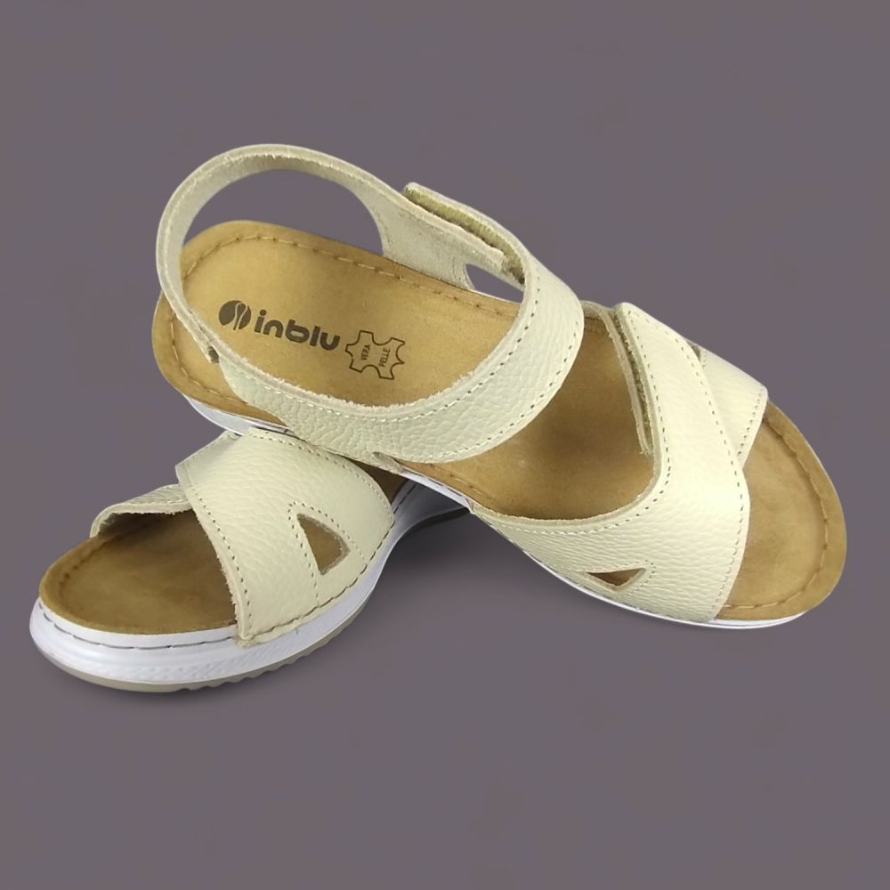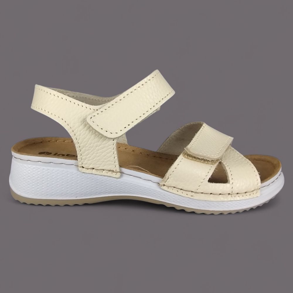Kiedy nie trzeba niczego udawać — skóra naturalna jest skórą naturalną. Model Inblu SD0001KU w kolorze słomkowym to sandał bez metalicznych połysków i ozdobnych detali. Sama jakość materiału, przemyślana konstrukcja z dwoma rzepami i wkładka Vera Pelle z prawdziwej skóry — for women who know what they want.