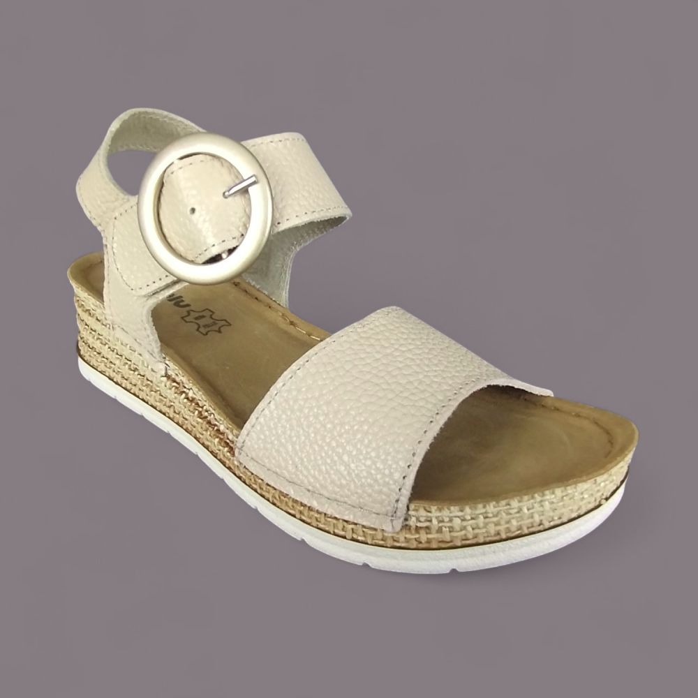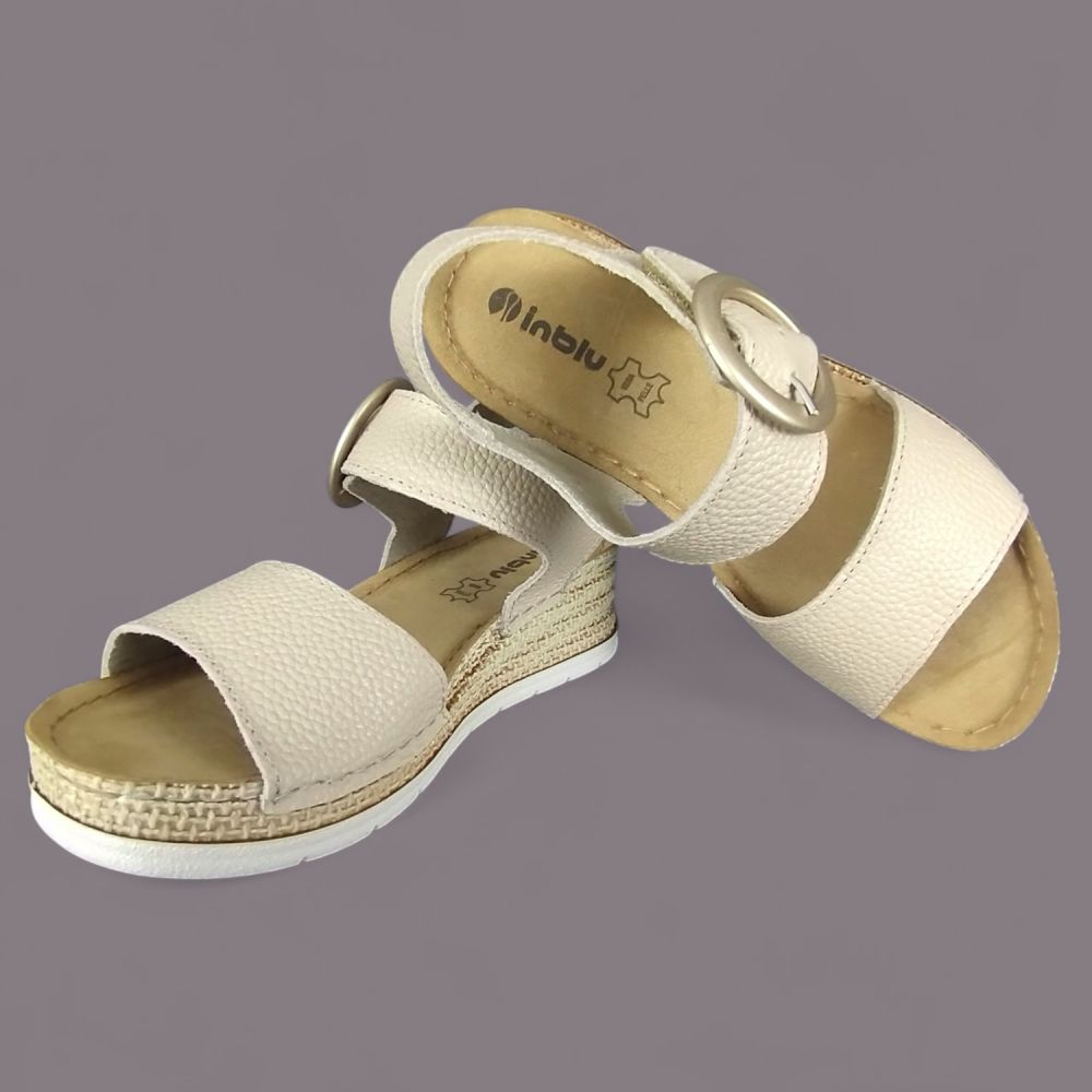 Sandały damskie Inblu RV0002KU – skórzane, beżowe, na koturnie