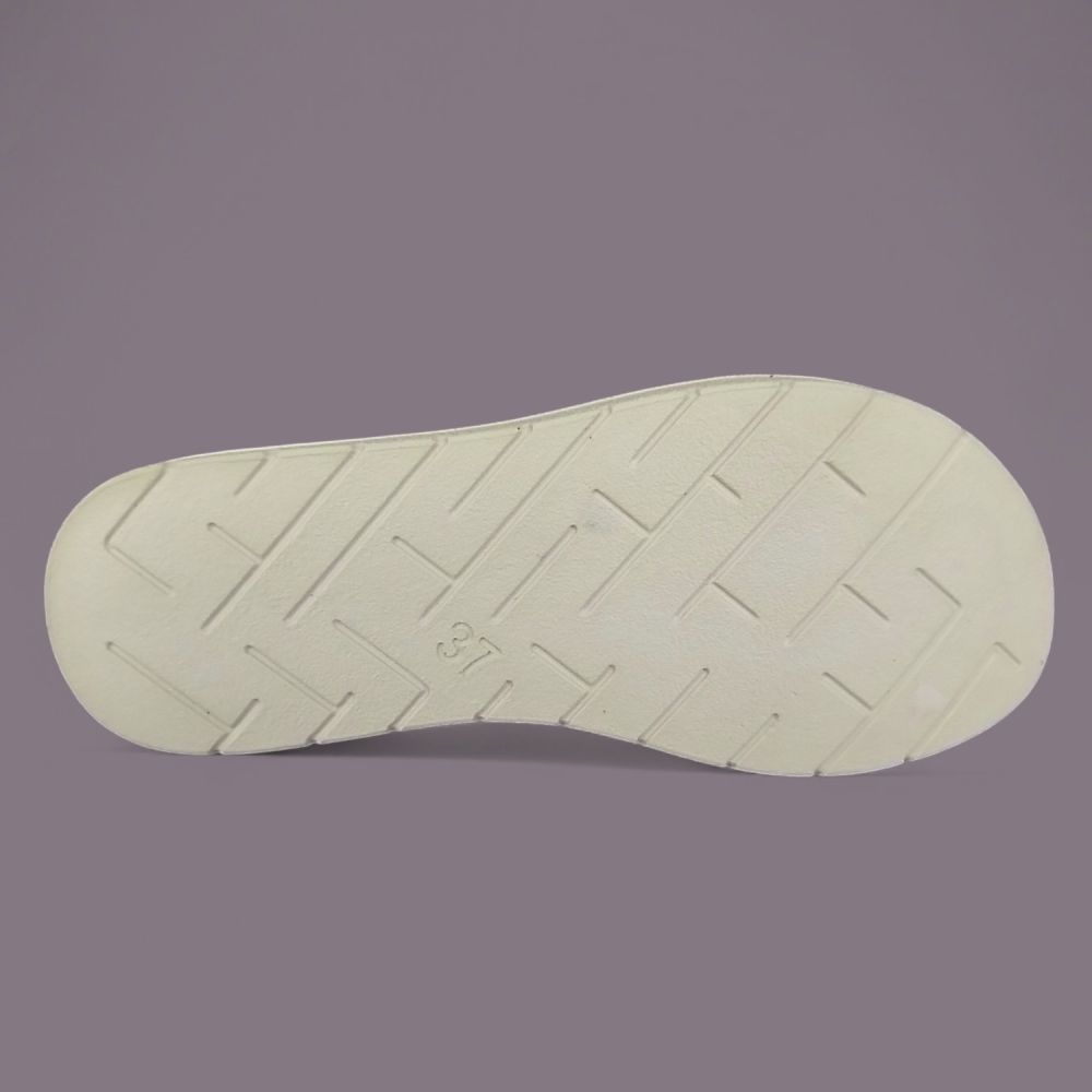 To jeden z tych detali, na które rzadko zwraca się uwagę — dopóki nie trafi się but, który tego nie ma. Dwie elastyczne gumki na podbiciu sprawiają, że sandał dopasowuje się do różnych tęgości stopy bez żadnego zapięcia. Wsuwasz stopę i but siedzi idealnie — ani za luźno, ani za ciasno.