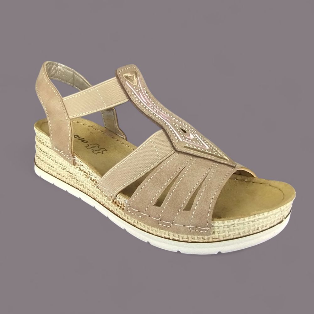 Sandały damskie Inblu RV000018 – jasnobrązowe, lekkie, z cyrkoniami na koturnie