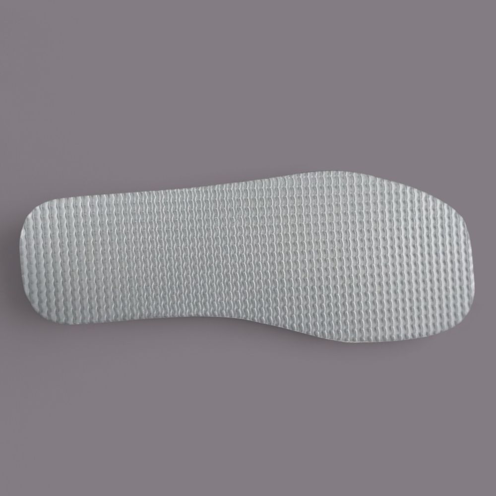 Podeszwa z utwardzonej pianki posiada delikatną bieżnię, która zapewnia przyczepność na gładkich powierzchniach domowych takich jak panele, kafelki i parkiet.