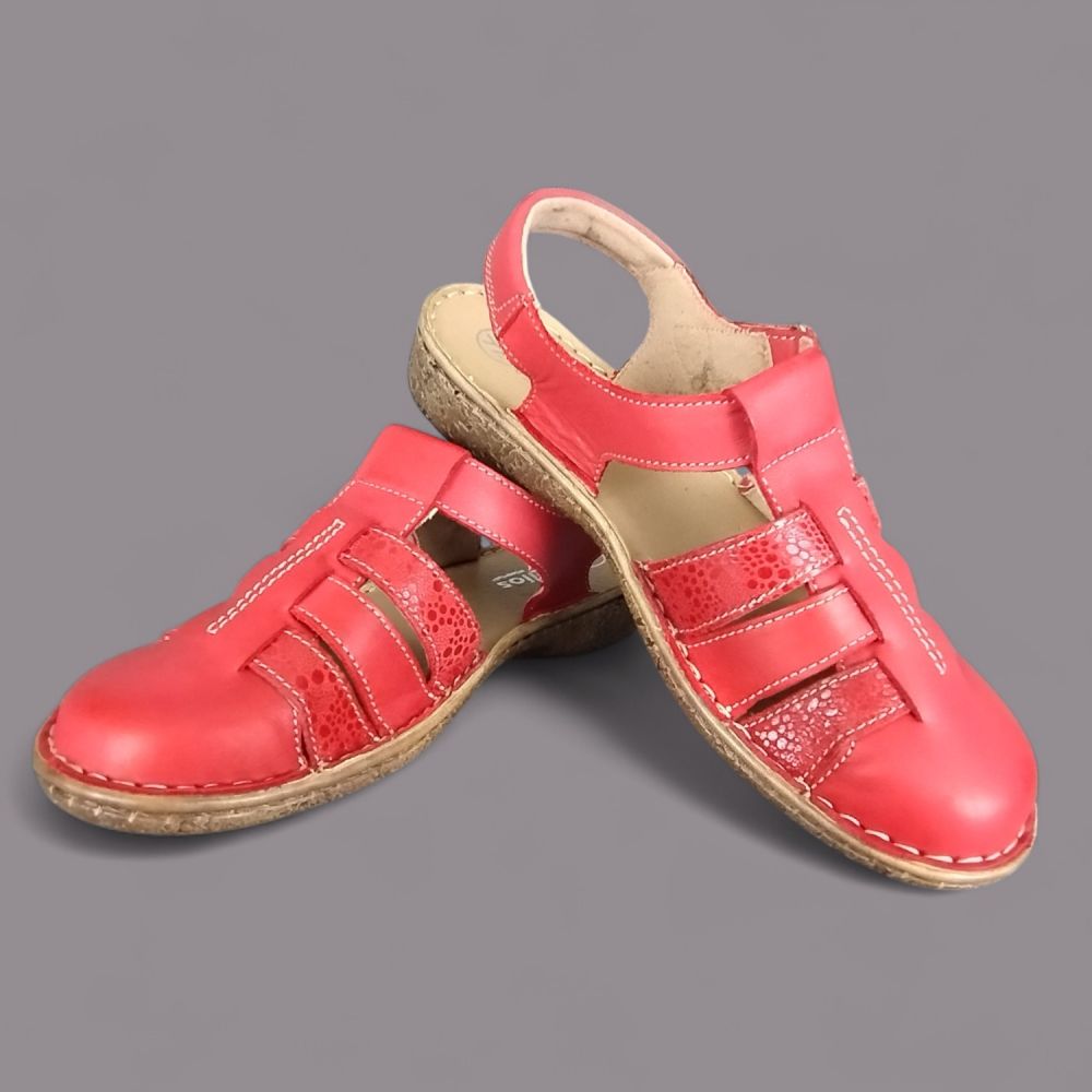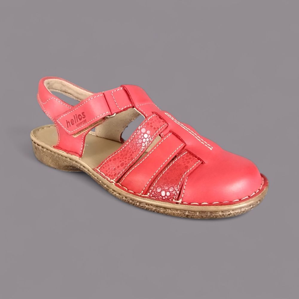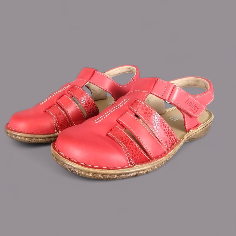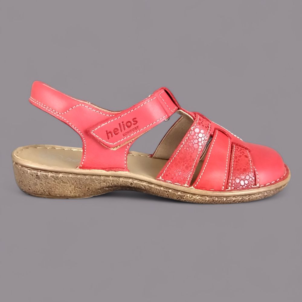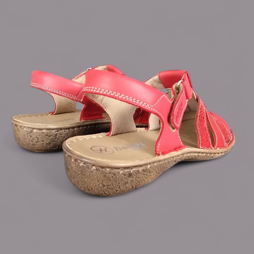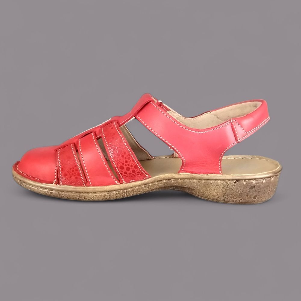 Sandały damskie Helios 159 – czerwone, skórzane, zakryte palce, Komfort, polska produkcja