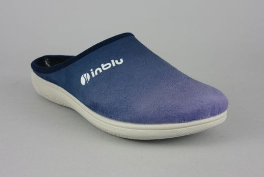 Bradzo wygodne i lekkie pantofle domowe renomowanego producenta, lidera na rynku obuwia domowego firmy INBLU. Charakteryzują się dużą wytrzymałością i trwałością, co jest priorytetem dla firmy. Dobra jakość idzie w parze z efektownym wzornictem. Cholewka wykonana z przyjemnego w dotyku materiału bawełnianego w kolorze granatowym przechodzący w fioletowy, z nadrukiem logo firmowym, . Szersze w palcach i profilowana wkładka daje uczucie dużego komfortu podczas użytkowania.